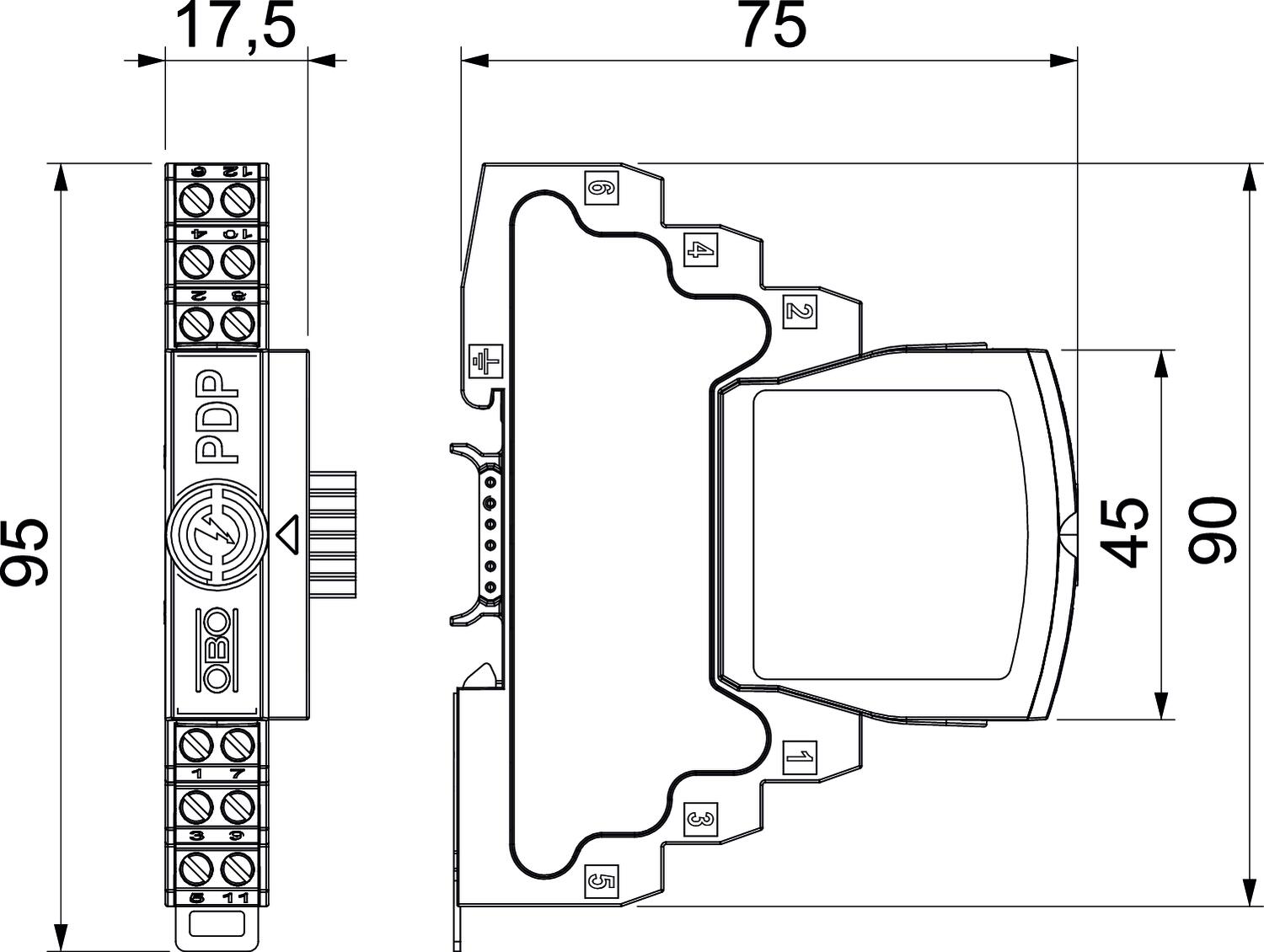 PDP-2x2-48-D-OS Ochrona linii danych 2x2 polowa, uziemienie bezpoś.