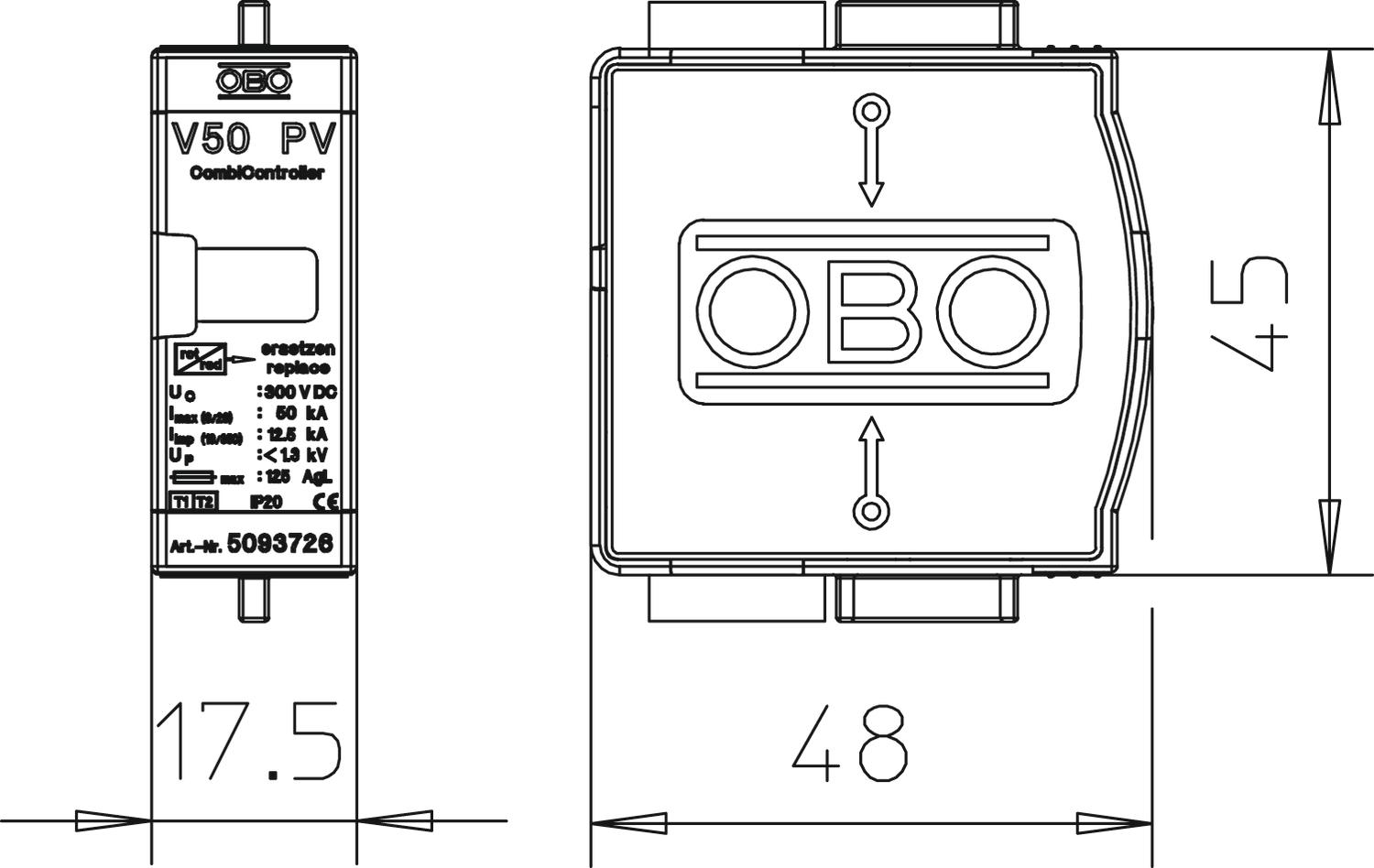 V50-B+C 0-300PV Ogranicznik przepięć V50 wkładka do fotowoltaiki
