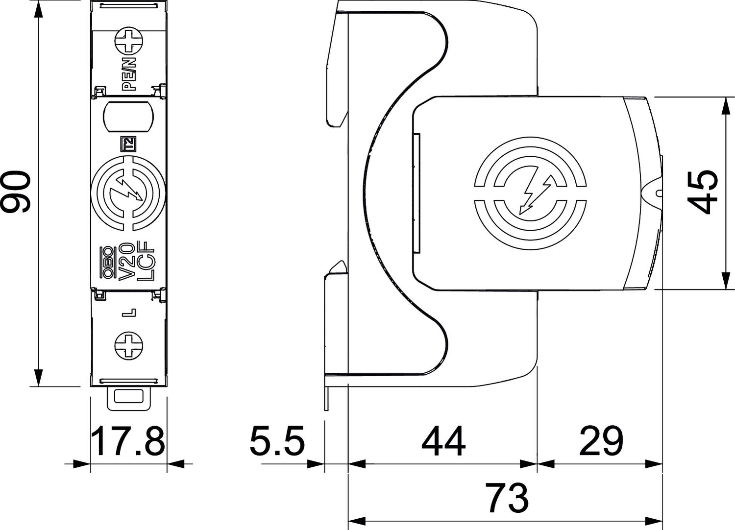 V20-LCF-1-280 Ogranicznik przepięć V20 bez prądu upływu, 1-polowy