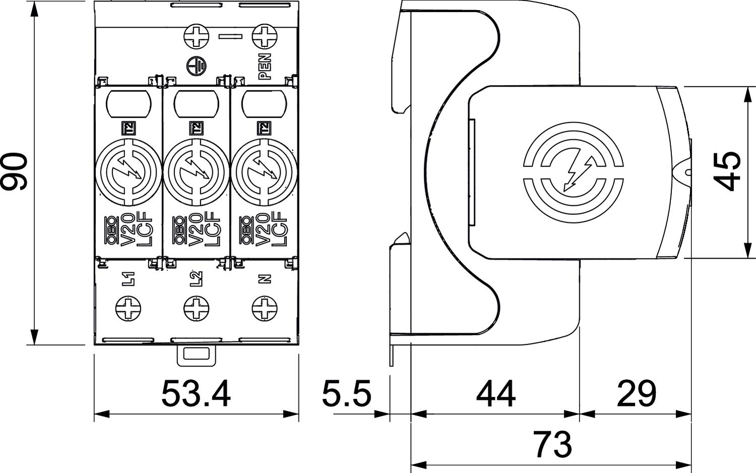 V20-LCF-3-280 Ogranicznik przepięć V20 bez prądu upływu, 3-polowy