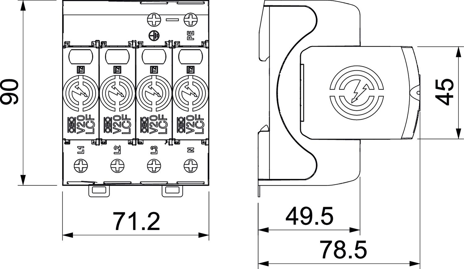 V20-LCF-4-280 Ogranicznik przepięć V20 bez prądu upływu, 4-polowy