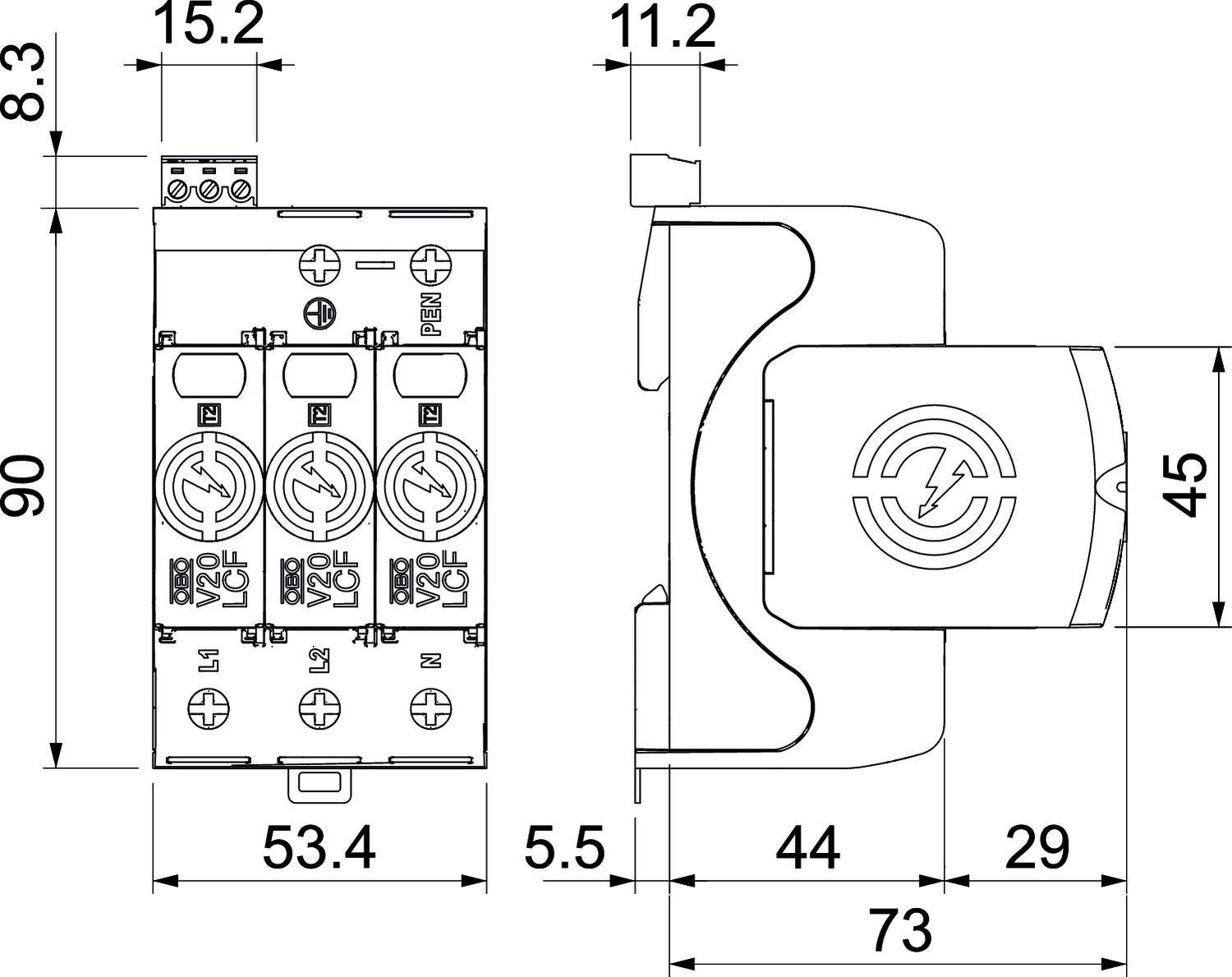 V20-LCF-3+FS-280 Ogranicznik przepięć V20 bez prądu upływu, 3+RS