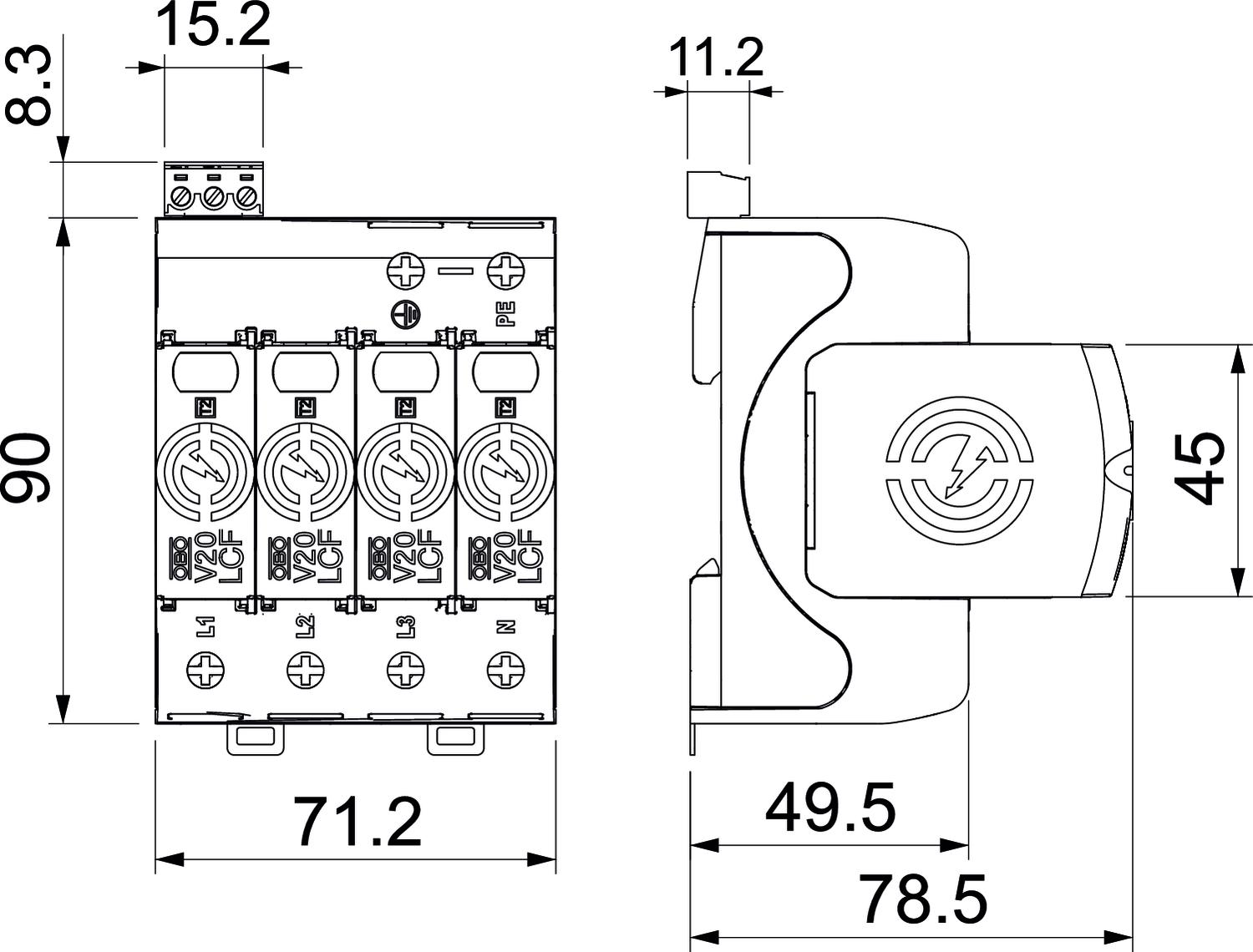 V20-LCF-4+FS-280 Ogranicznik przepięć V20 bez prądu upływu, 4+RS