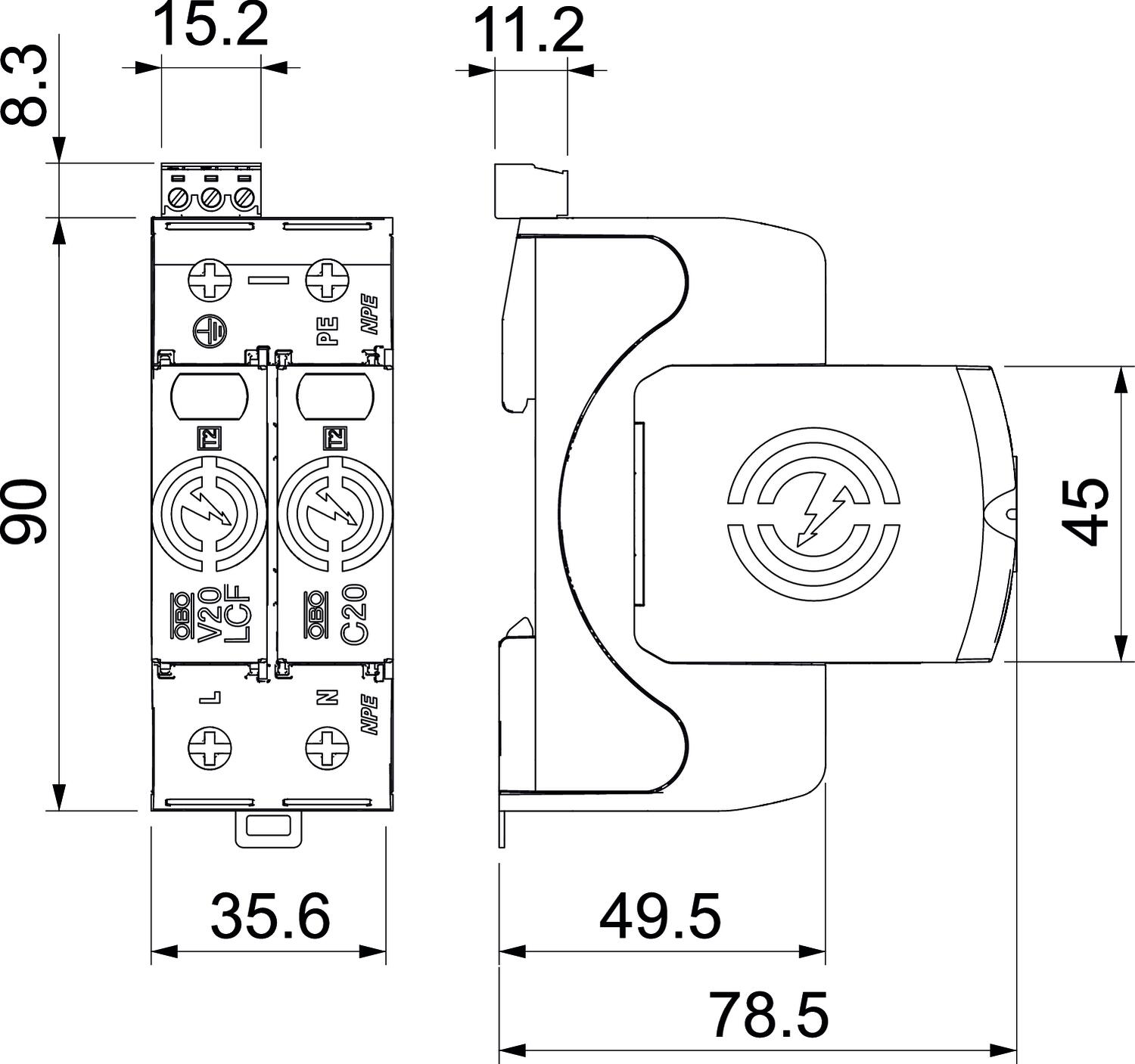 V20-LCF-1+1+FS-2 Ogranicznik przepięć V20 bez prądu upływu, 1+1+RS
