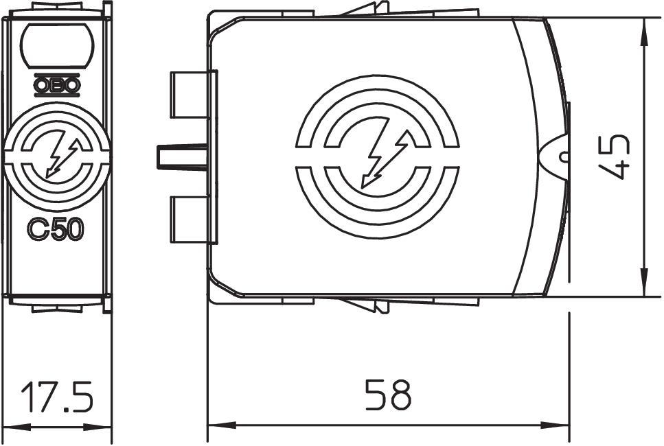 • Zdolność rozładowania prądu piorunowego do 50kA (10/350) łącznie