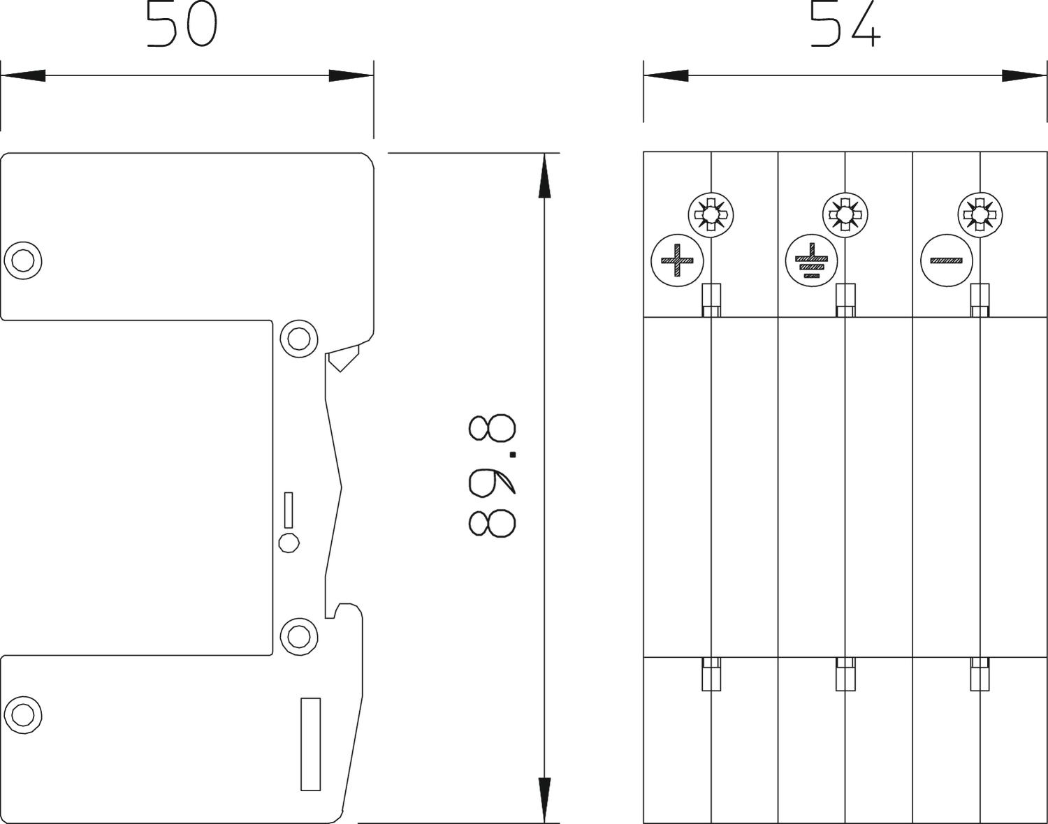Podstawa ogranicznika do systemów fotowoltaicznych do Uoc = 1000V (obwód Y)