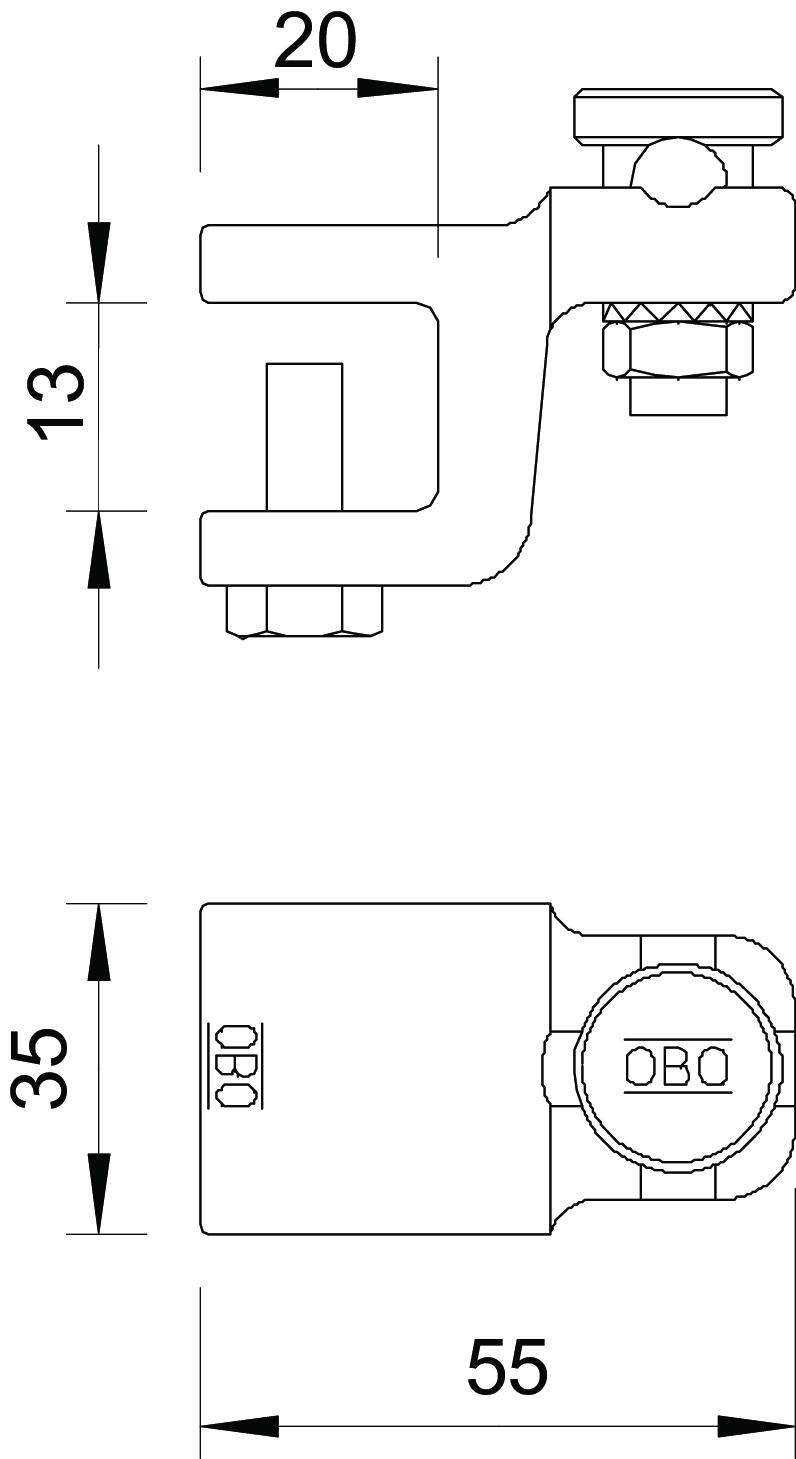 • Korpus zacisku z żeliwa ciągliwego, ocynkowany ogniowo