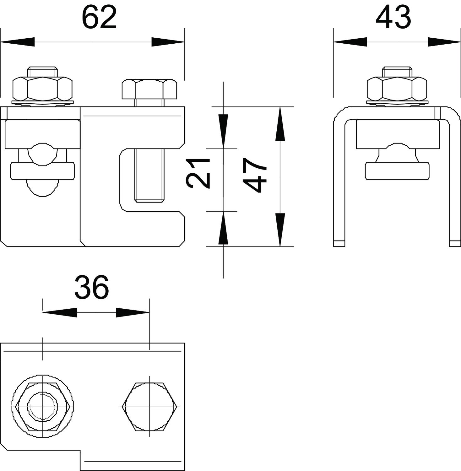 • Do mocowania do konstrukcji o grubości kołnierza do 20 mm