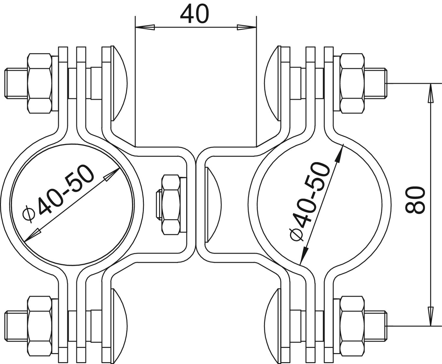 • Zacisk montażowy do mocowania izolowanych masztów rurowych na chronionej konstrukcji lub na rurach ø 40–50 mm