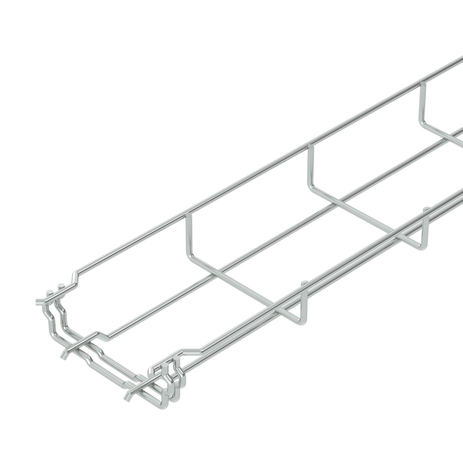 Mesh cable tray with shaped connector of side height 35 mm.
