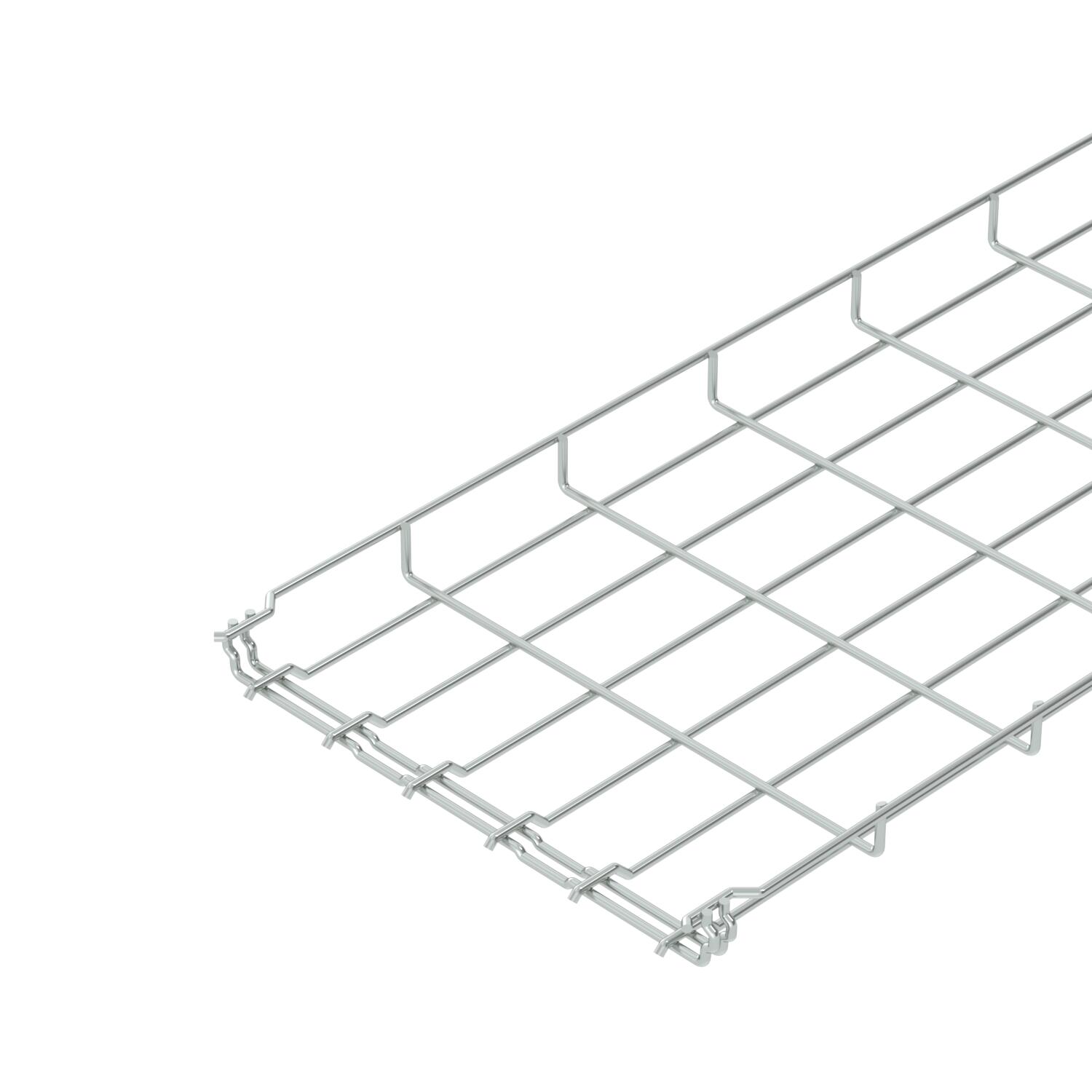 Mesh cable tray with shaped connector of side height 35 mm.