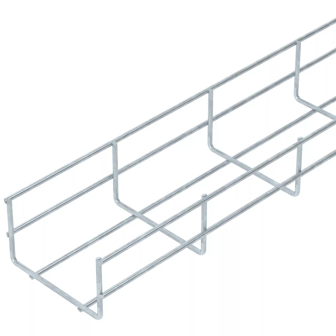 Korytko siatkowe ze spawanych punktowo drutów stalowych o wysokości boku 55 mm.