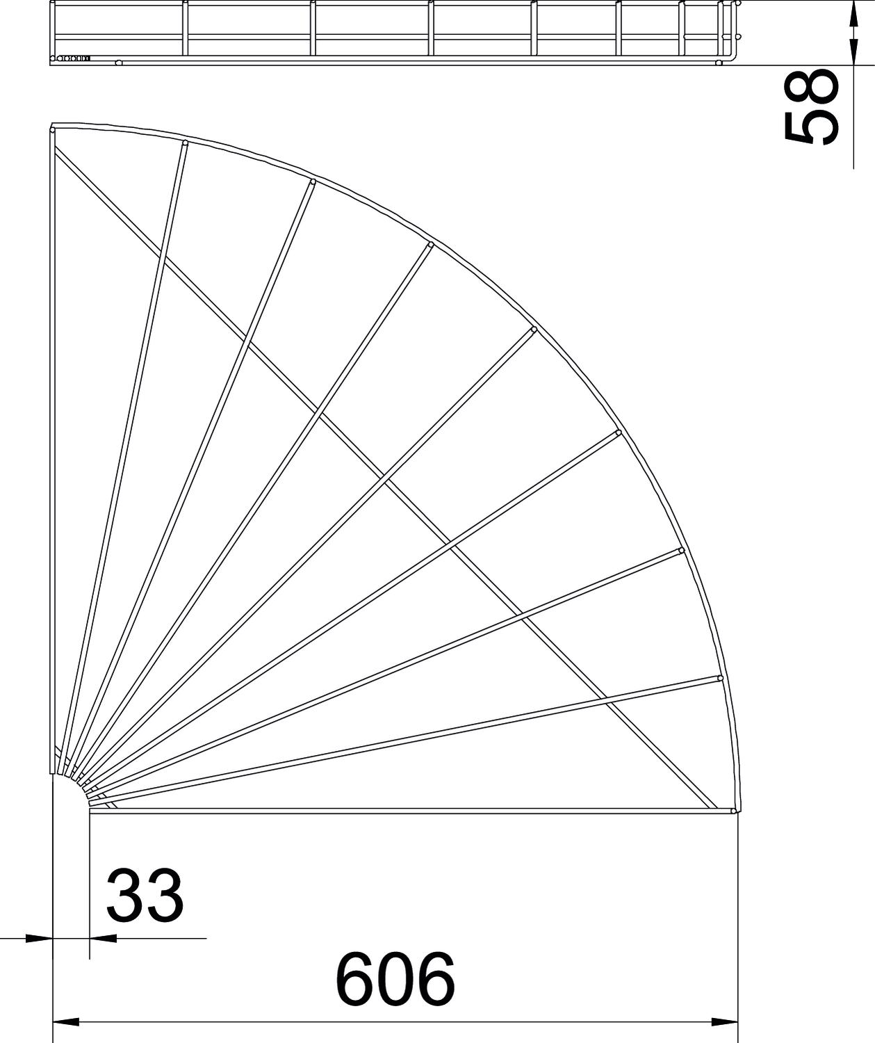 Łuk 90°, poziomy, do korytek siatkowych o wys. boku 55 mm.