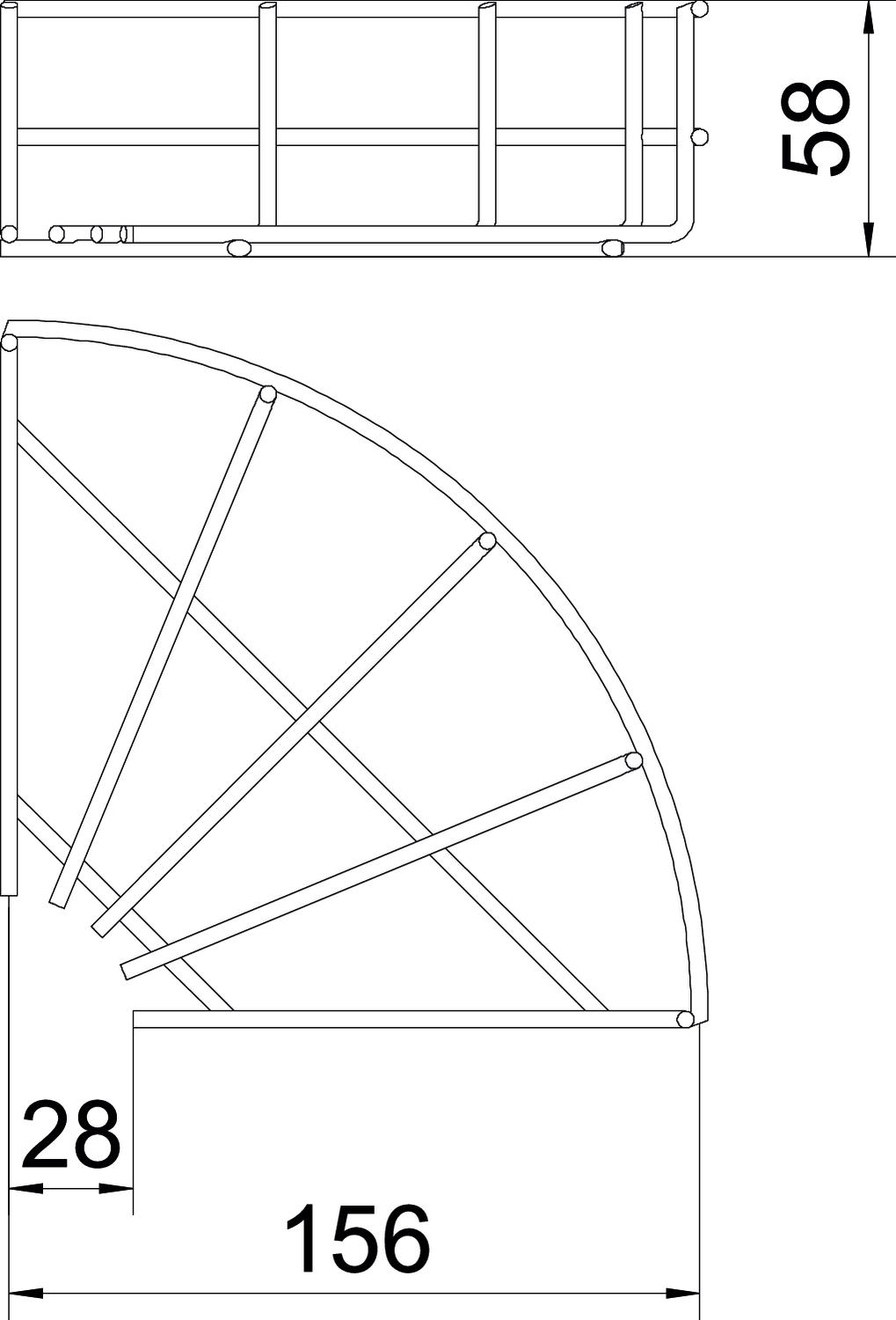 Łuk 90°, poziomy, do korytek siatkowych o wys. boku 55 mm.