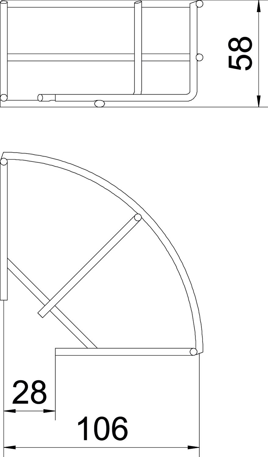 Łuk 90°, poziomy, do korytek siatkowych o wys. boku 55 mm.