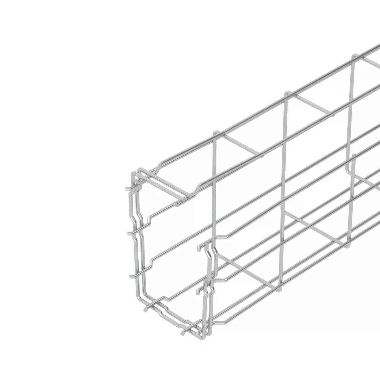 Korytko siatkowe w kształcie G ze spawanymi punktowo drutami stalowymi, o różnych wysokościach i szerokościach boków.