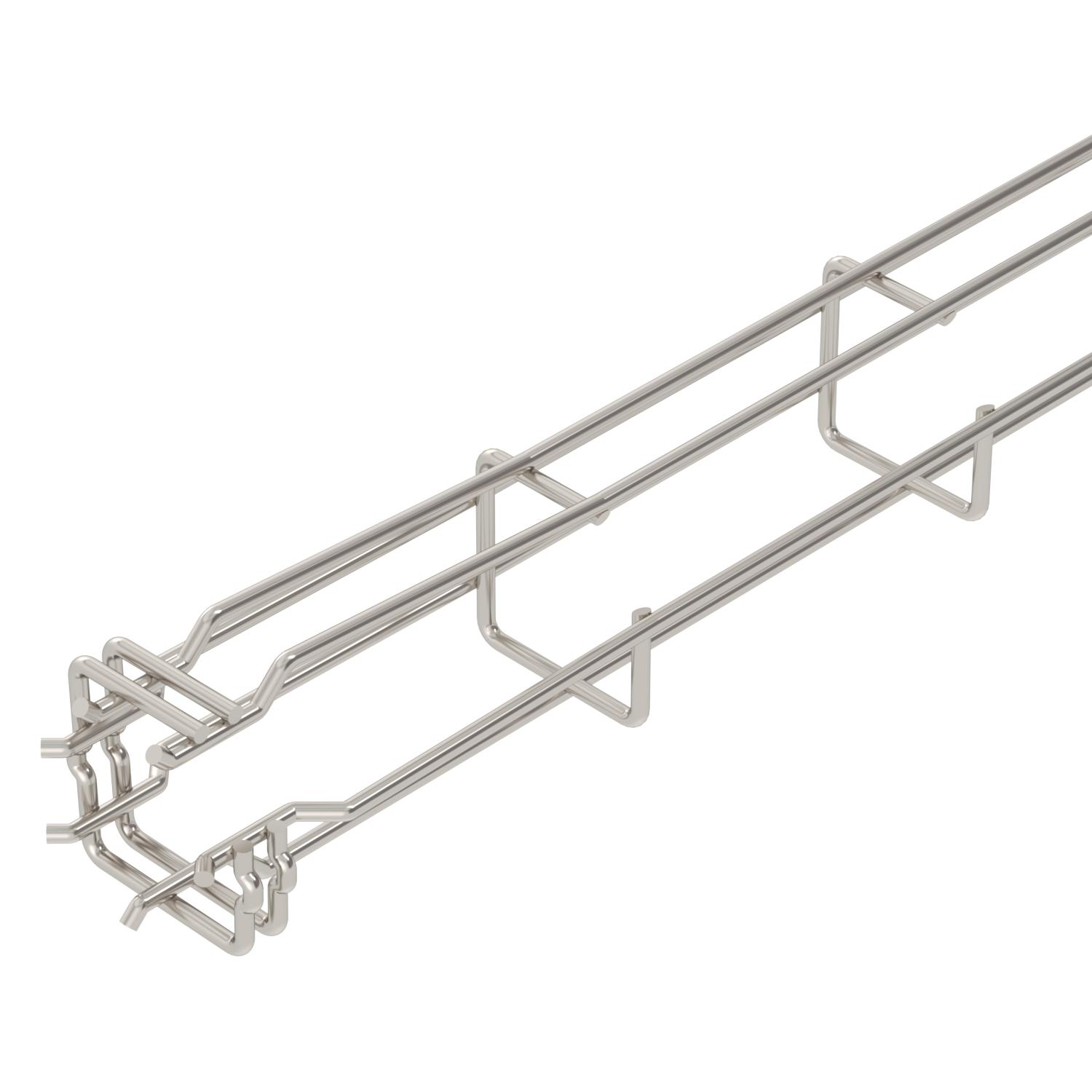 Korytko siatkowe w kształcie G ze spawanymi punktowo drutami stalowymi, o różnych wysokościach i szerokościach boków.
