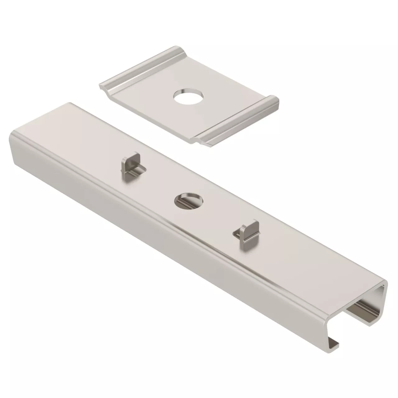 Uchwyt środkowy wraz z zaciskiem do podwieszenia korytek siatkowych.