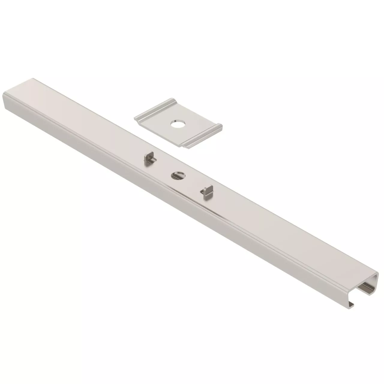 Uchwyt środkowy wraz z zaciskiem do podwieszenia korytek siatkowych.