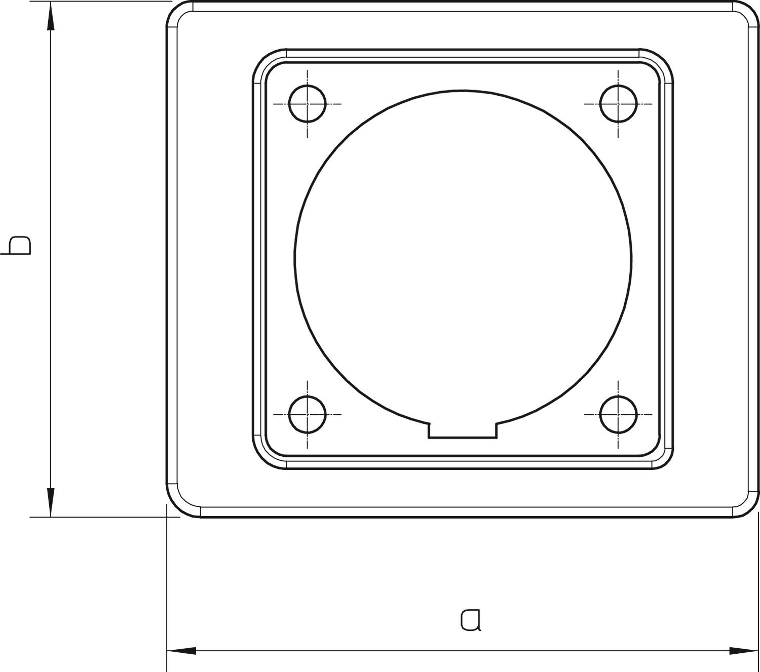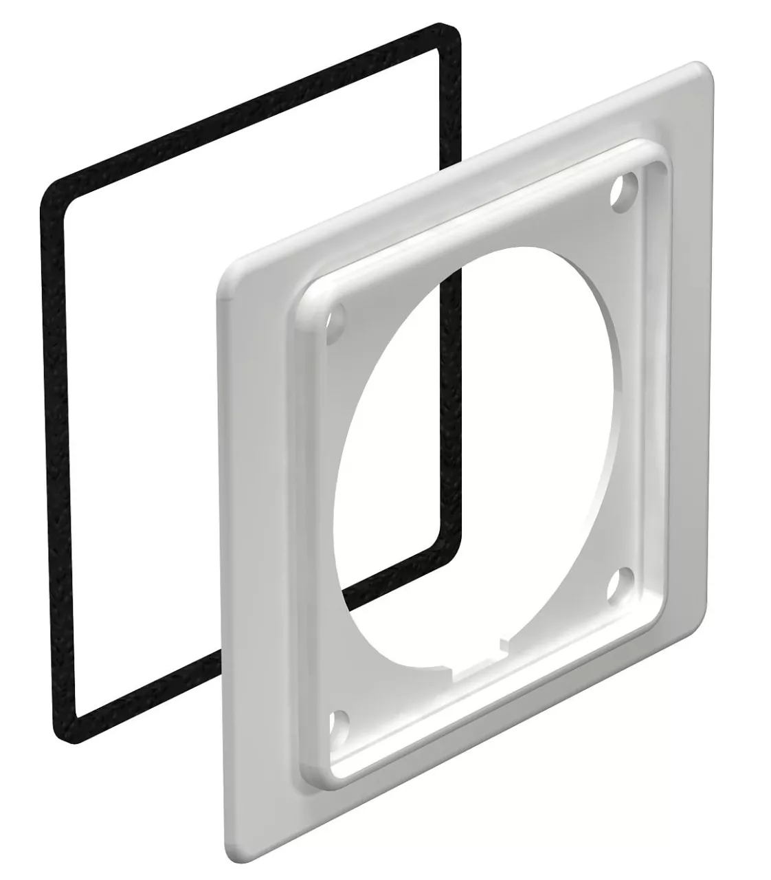 Kołnierz pośredni do montażu gniazd siłowych CEE 16A. Jest on montowany przy instalacji gniazd siłowych CEE za pokrywą puszek instalacyjnych. Pasuje 400V CEE 16A 5-Pol 6h, numer katalogowy 6109874.