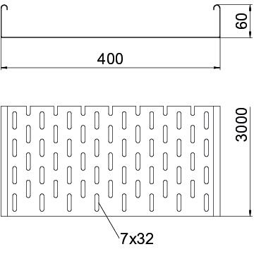 MKS 60 = System średnio-ciężkich koryt kablowych o wysokości boku 60 mm. Wersja FS wraz z zestawem łączników wzdłużnych RV 60.