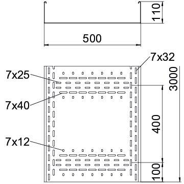 Ciężki system koryt kablowych BKRS do ciągów komunikacyjnych z perforacją dna, o wysokości burty 110 mm.