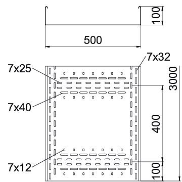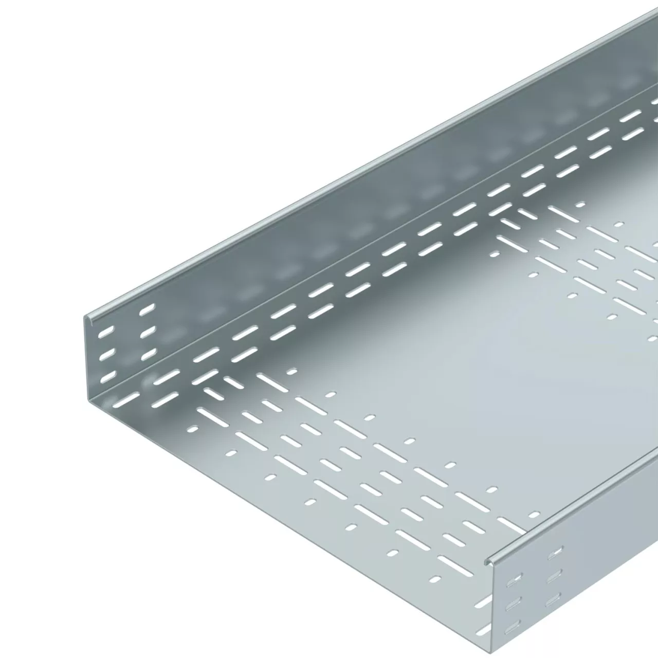 Ciężki system koryt kablowych BKRS do ciągów komunikacyjnych z perforacją dna, o wysokości burty 100 mm.