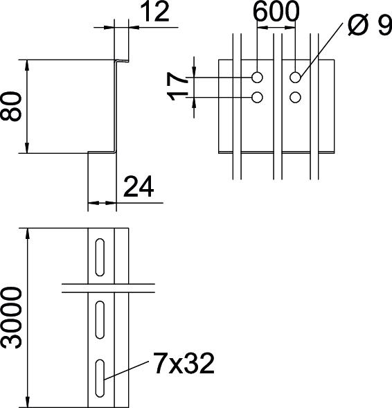 Przegroda rozdzielająca do systemu koryt kablowych BKRS. Mocowanie do perforacji dna za pomocą śrub płaskich M6 x 12 mm.