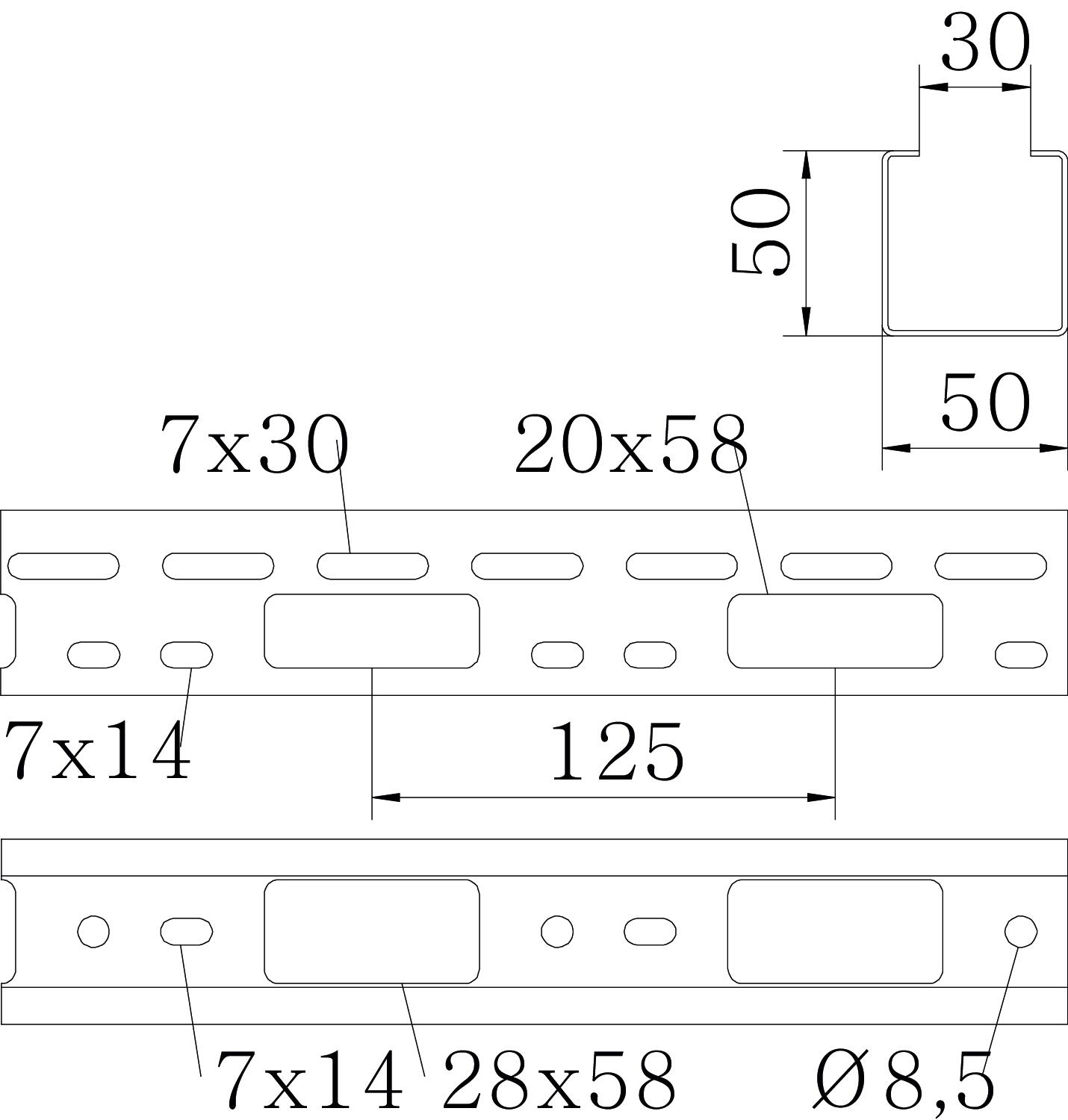 | Perforacja montażowa w części dolnej: |