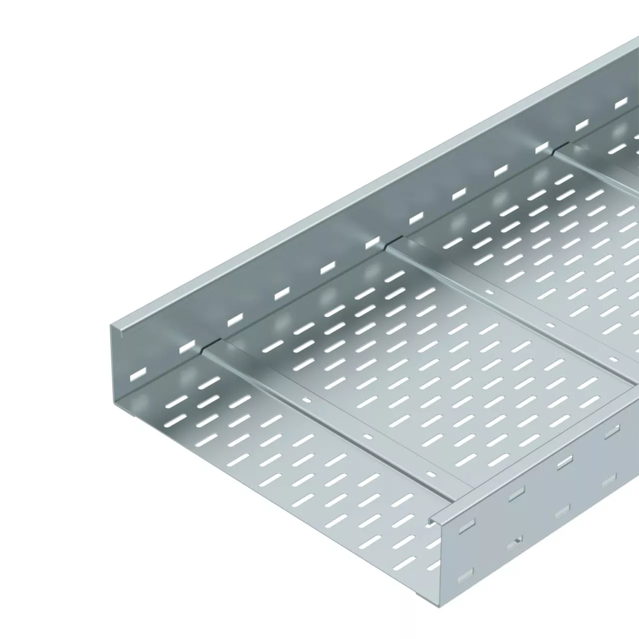 Szerokorozpiętościowe koryto kablowe, z perforacją boczną, o wysokości boku 110 mm.