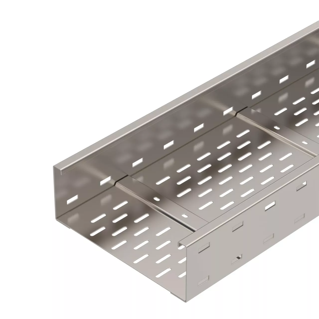Szerokorozpiętościowe koryto kablowe , z perforacją, o wysokości boku 110 mm.