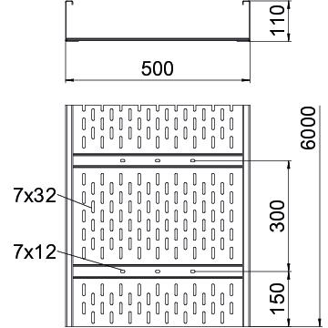 Szerokorozpiętościowe koryto kablowe , z perforacją, o wysokości boku 110 mm.