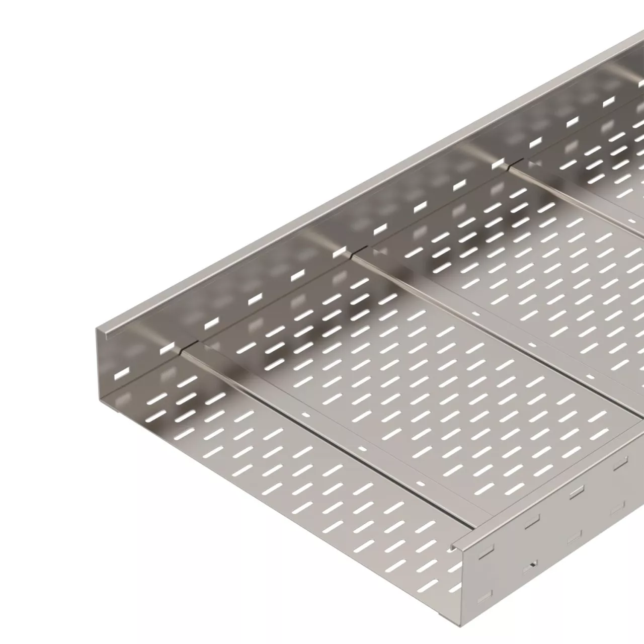 Szerokorozpiętościowe koryto kablowe , z perforacją, o wysokości boku 110 mm.