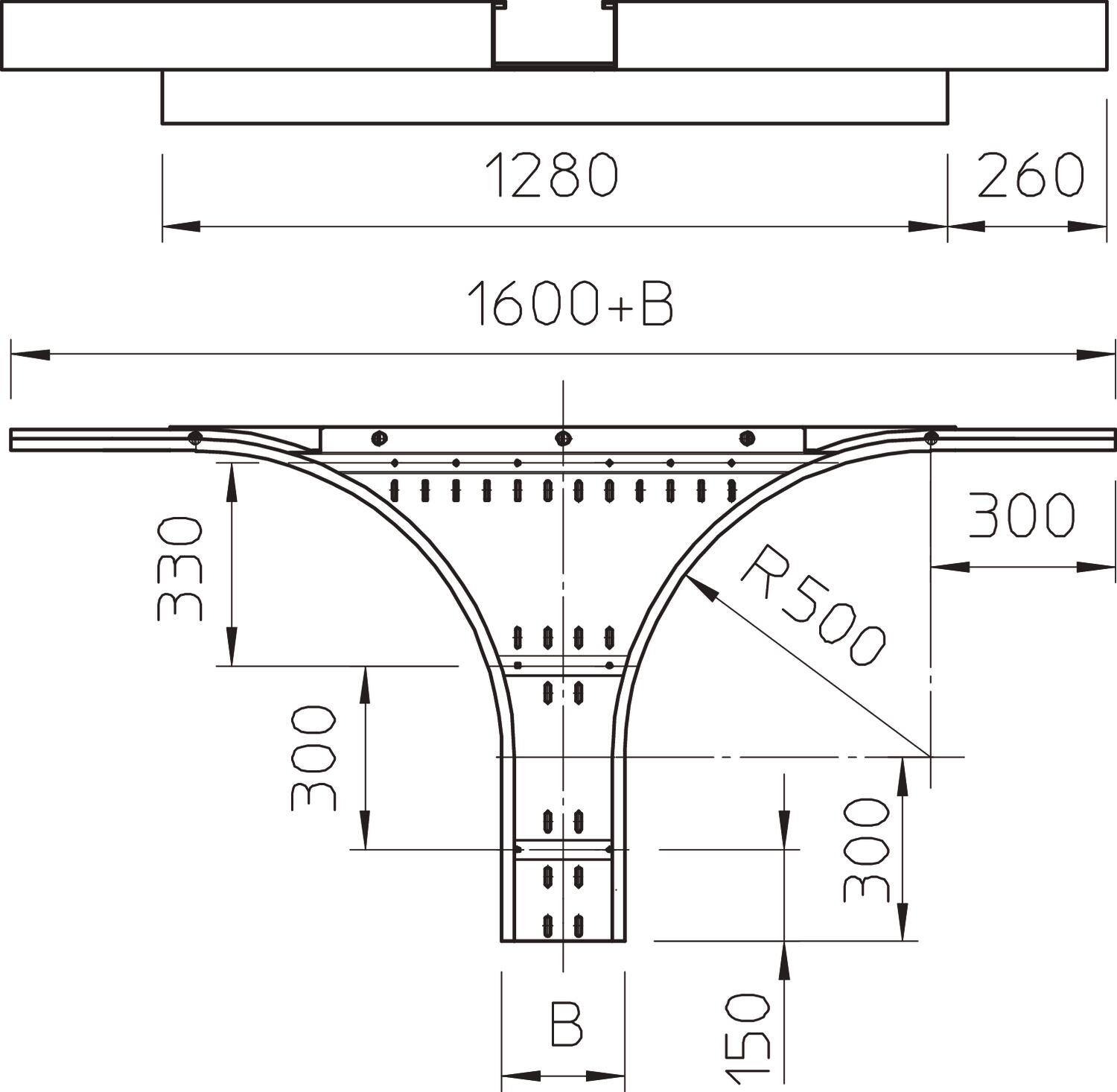 Trójnik dostawny do montażu poziomego. Do wszystkich koryt kablowych szerokorozpiętościowych o wysokości boku 110 mm.