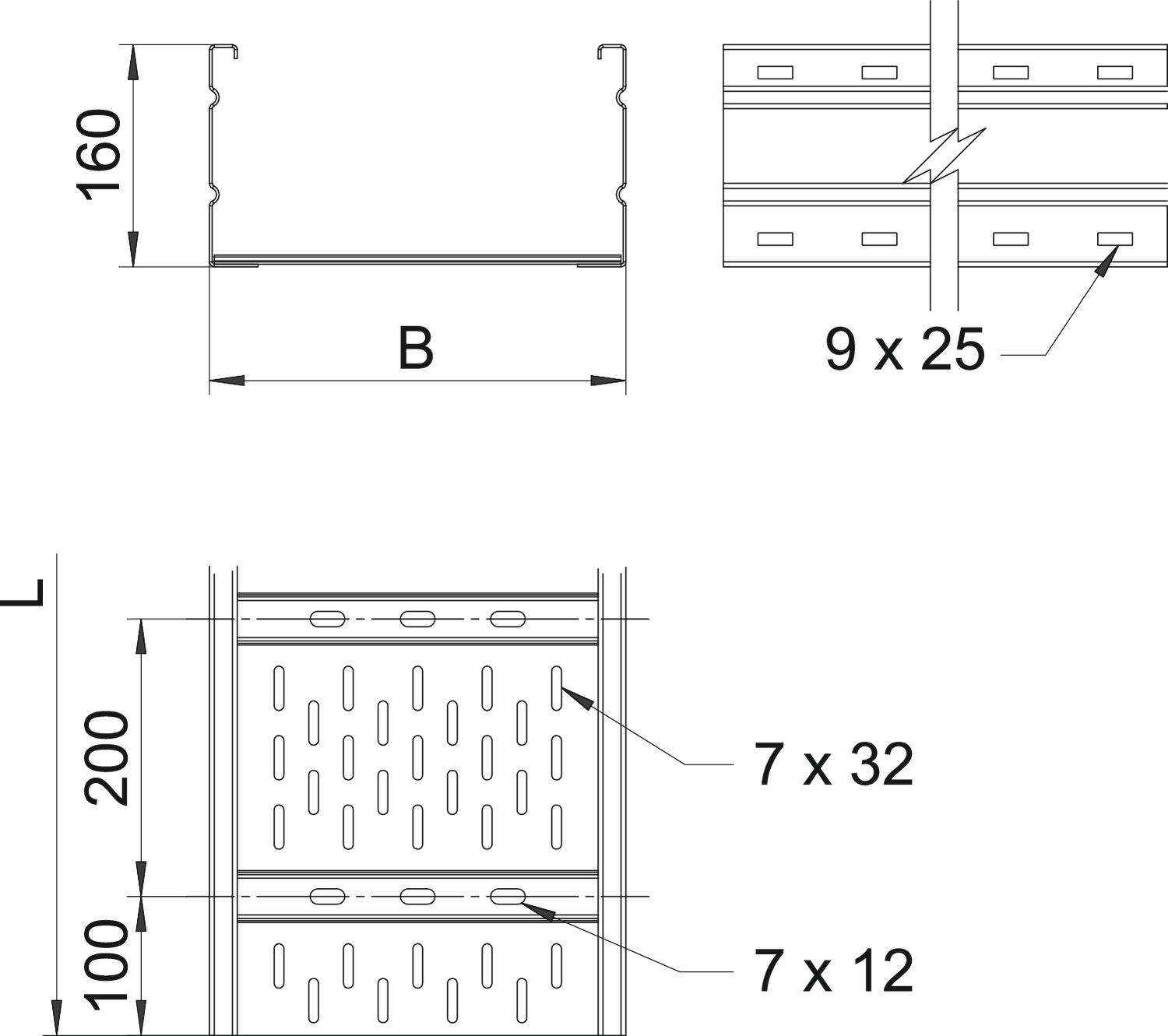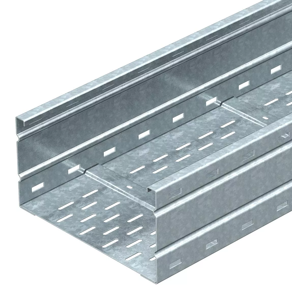 Szerokorozpiętościowe koryto kablowe , z perforacją, o wysokości boku 160 mm.