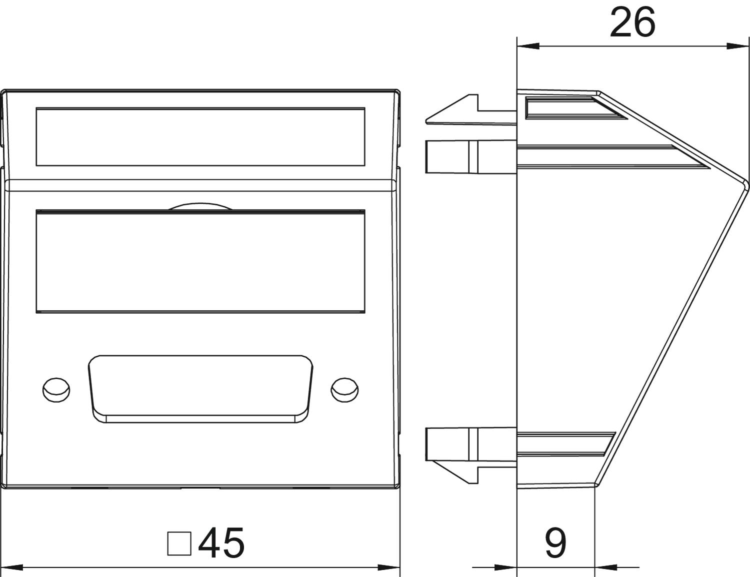 Wspornik montażowy DVI, wyjście ukośne, z polem opisowym, bez gniazda. Mocowanie zatrzaskowe do poziomego i pionowego montażu w otoczeniu systemowym.