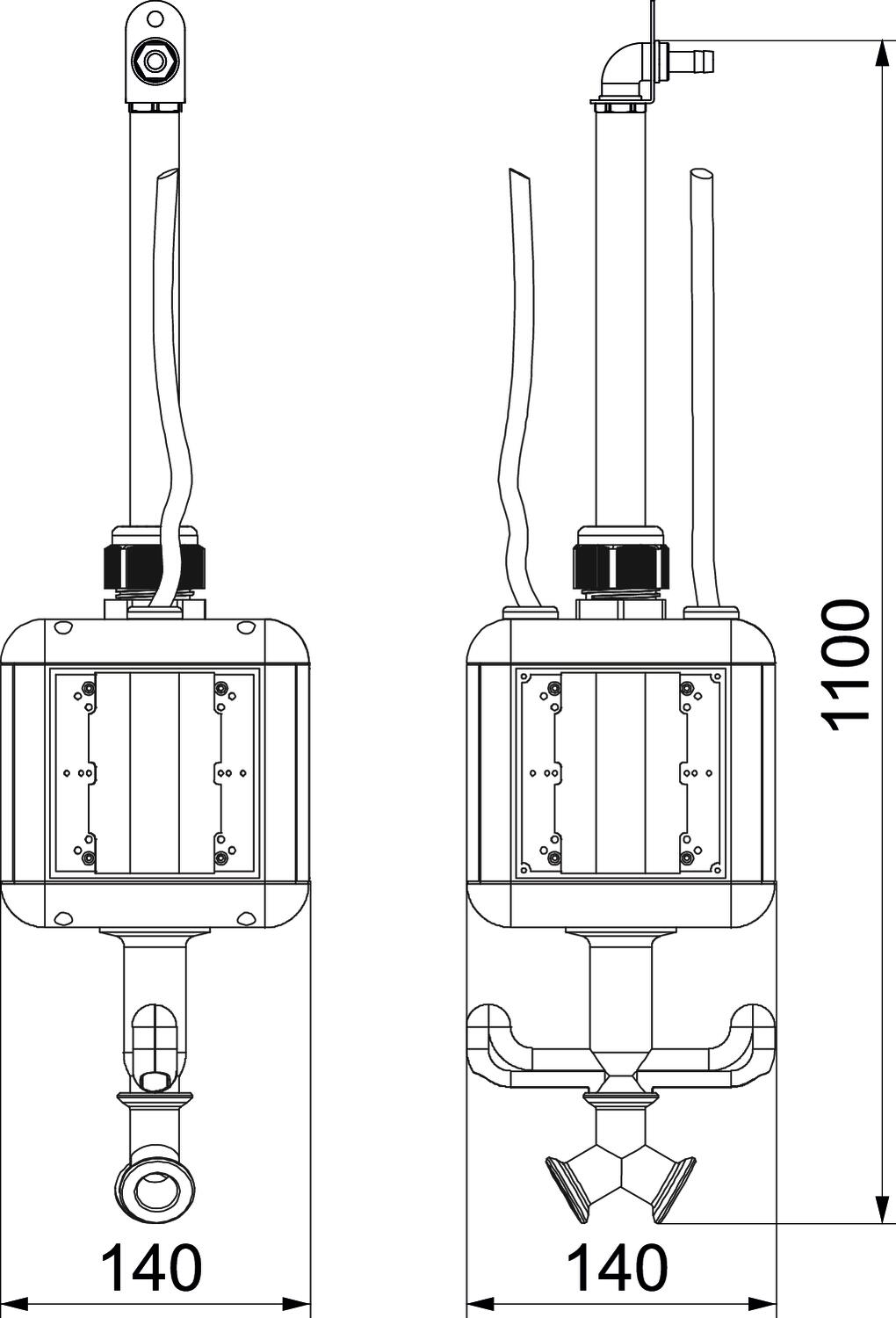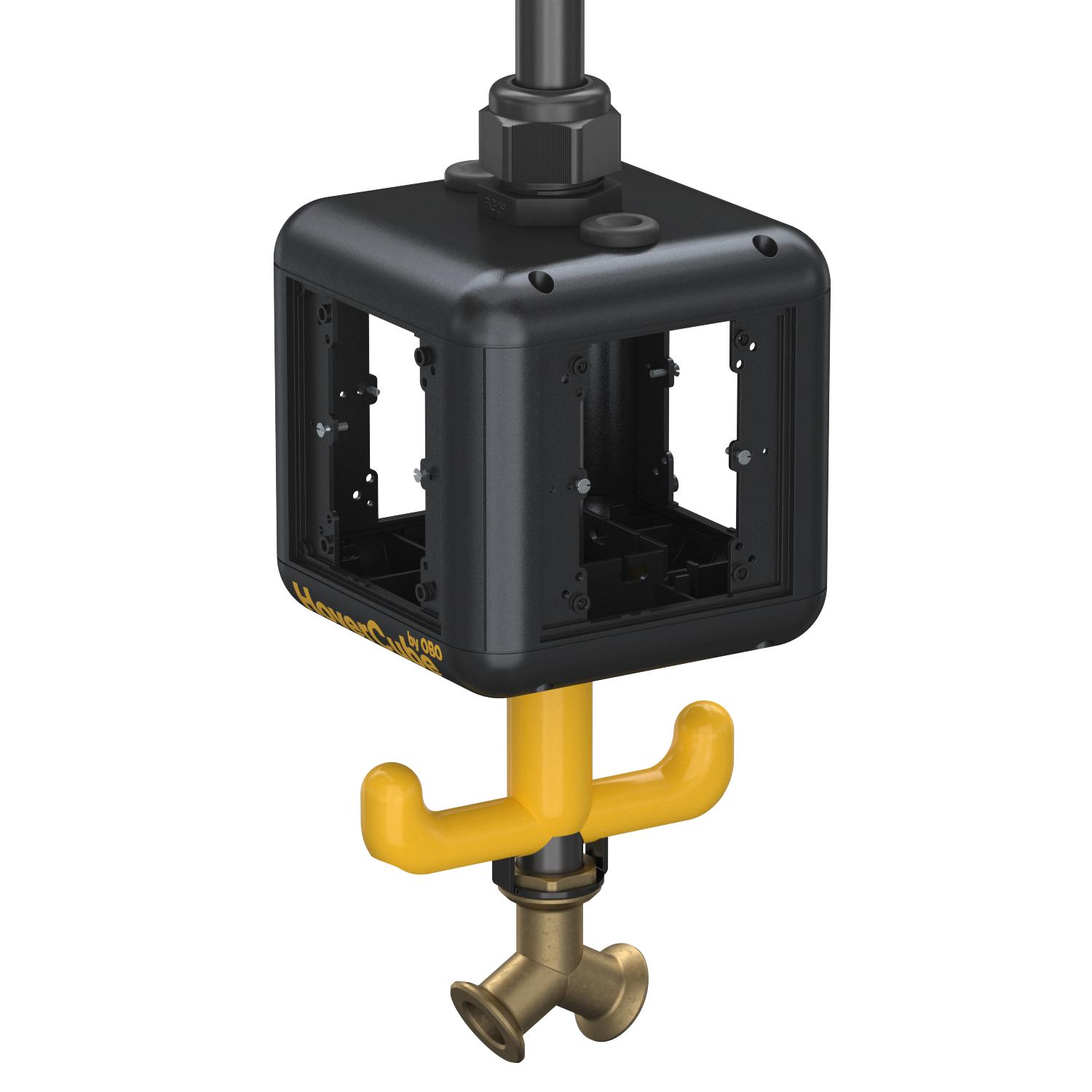 Pusta jednostka z 1 m rurą 1/2” i przyłączem sprężonego powietrza 13 x 3,5 mm oraz 2-torowym rozdzielaczem 1/2”. Z uchwytem i hakiem do zawieszania, do montażu 4 sztuk osprzętu, z dołączoną przegrodą. Bez ramek montażowych.