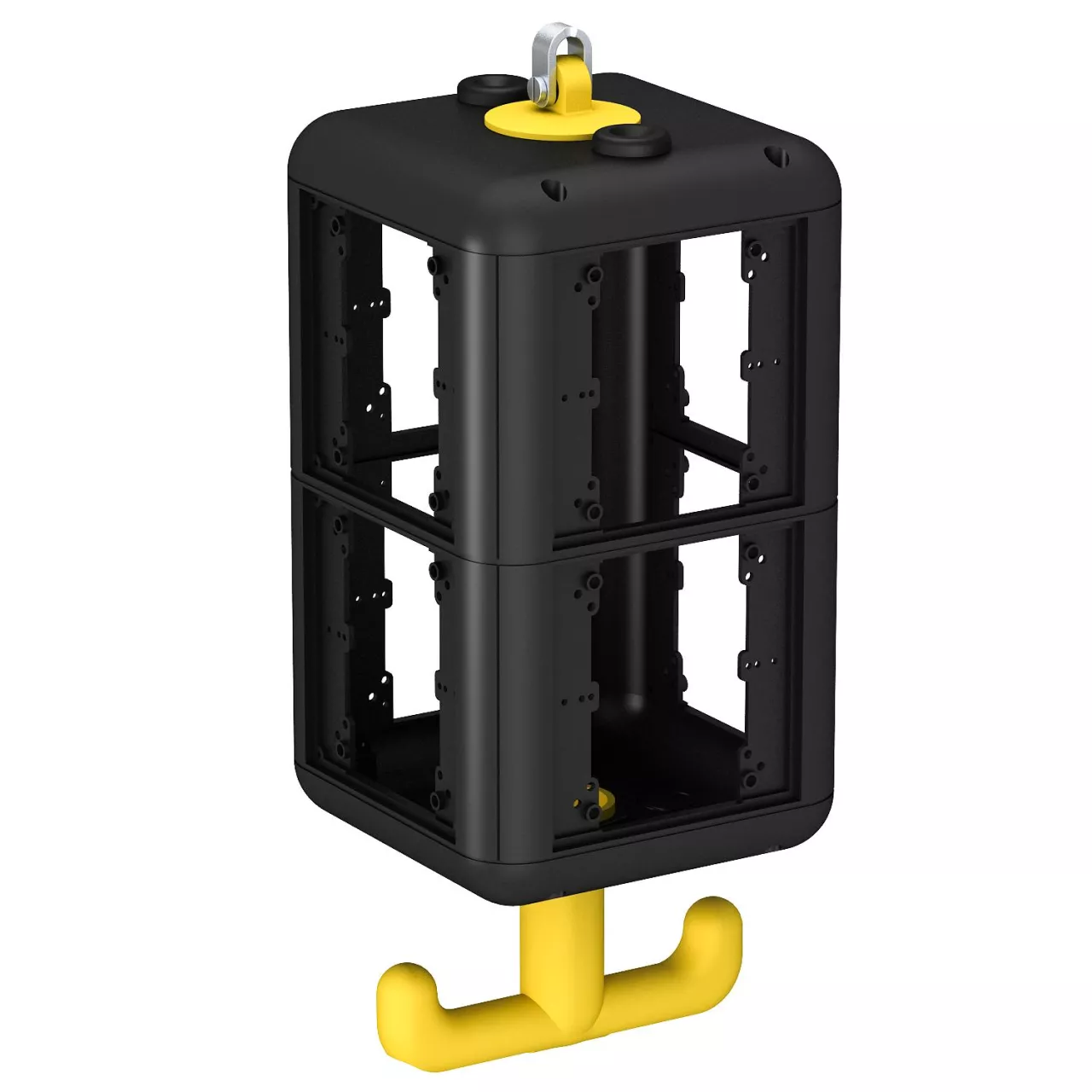 Pusta jednostka z uchwytem i hakiem do zawieszania, do montażu 8 sztuk osprzętu, z dołączoną przegrodą. Bez ramek montażowych.