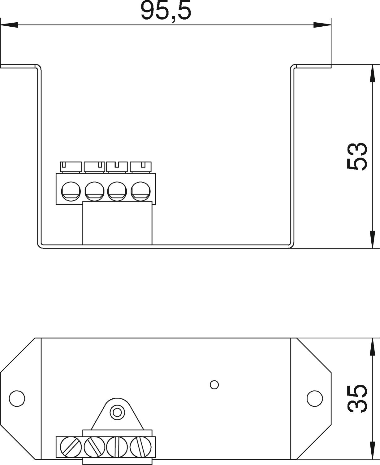 - podstawy z szyną kołpakową 35 mm i listwą zaciskową PE 4 x10 mm²