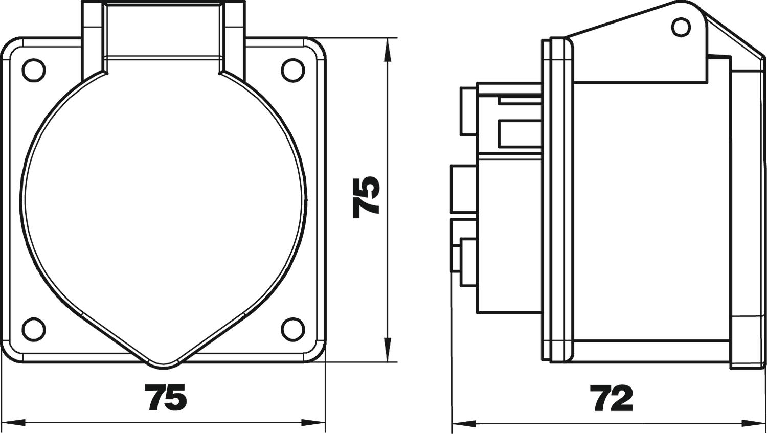 Gniazdo siłowe CEE z pasem montażowym 60 mm, 3-biegunowe+N+PE, 400 V, 16 A, 6 h.