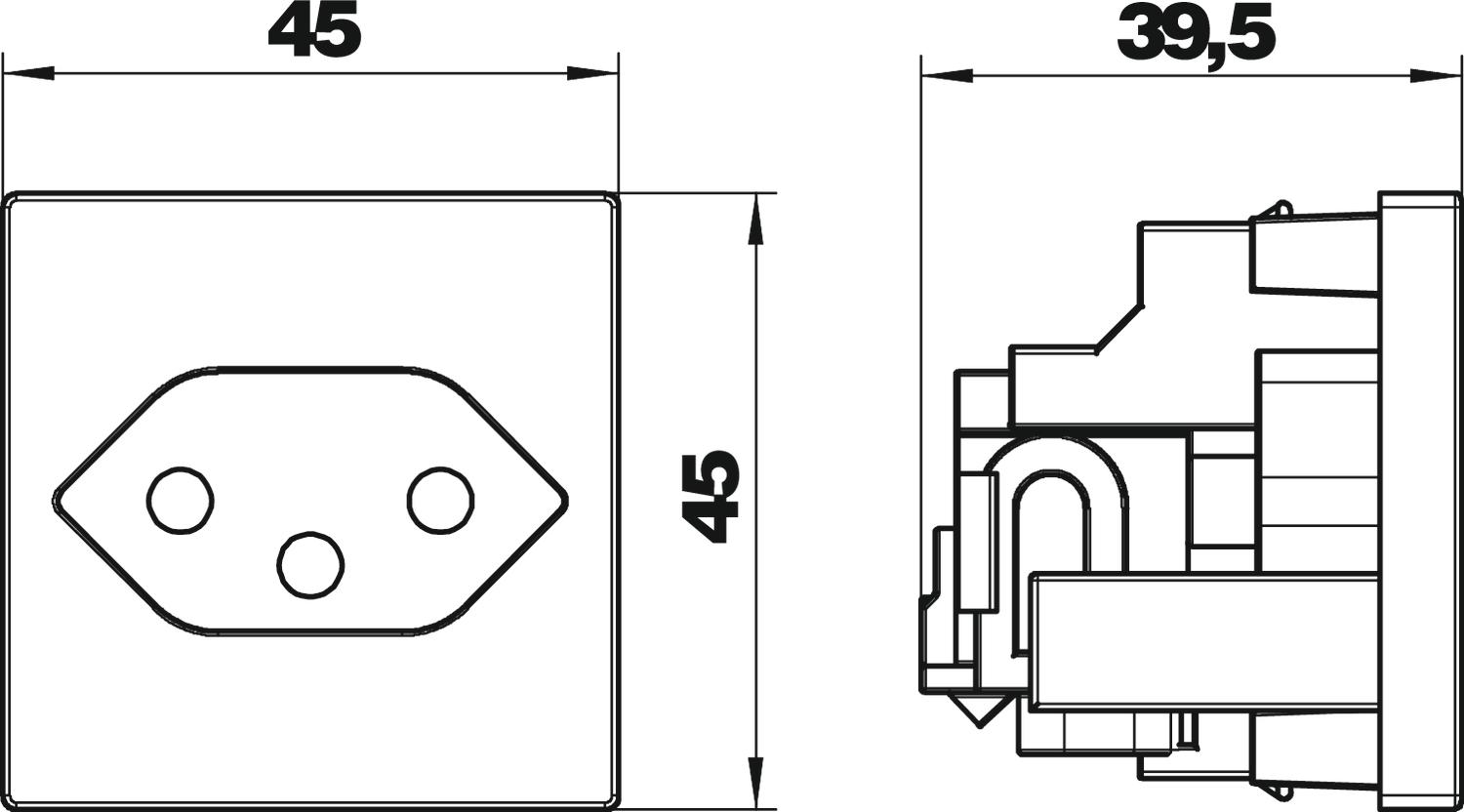 Gniazdo zasilające, pojedyncze 0° wg normy szwajcarskiej (SEV), z szybkozłączkami, 10 A, 250 V~, typ 13, z zaciskami połączeniowymi wg IEC 60884-1.