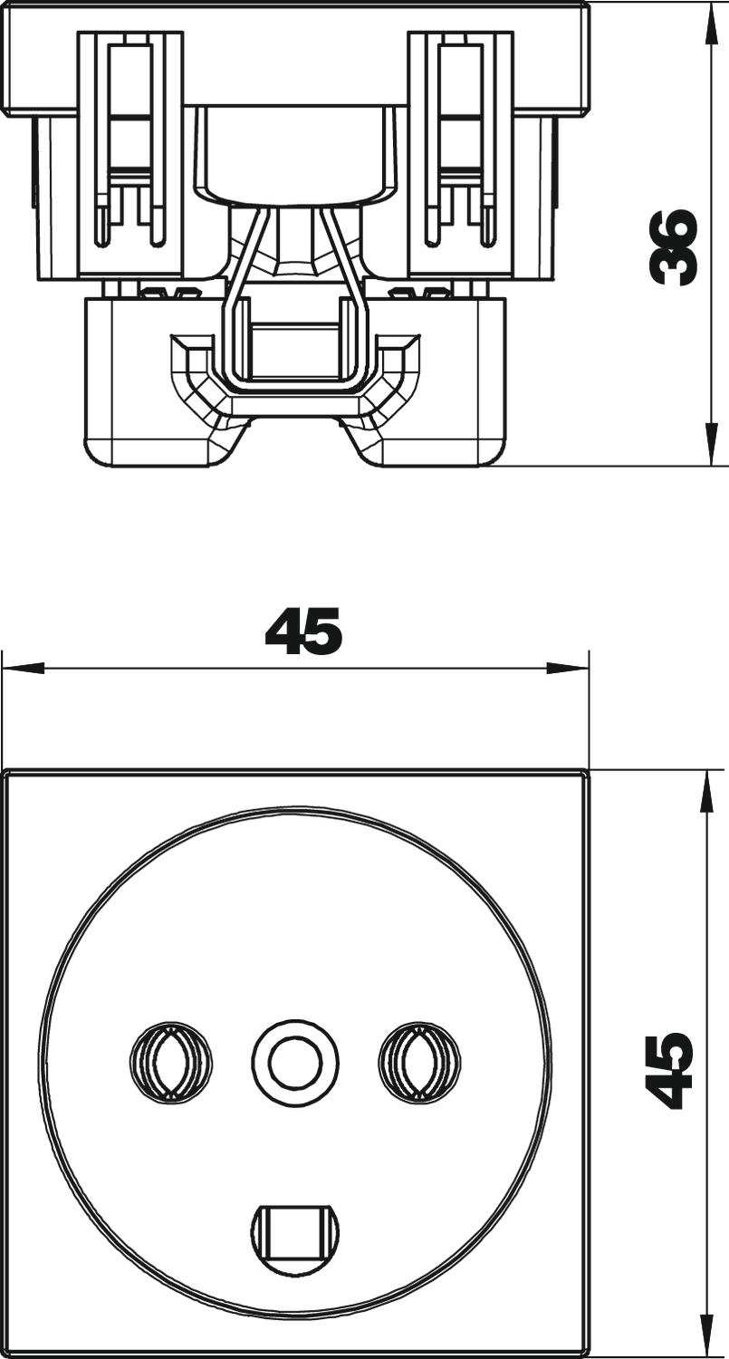 Gniazdo zasilające, pojedyncze 0° wg normy duńskiej, z zaciskami śrubowymi, 2-polowe, 16 A, 250 V~, z zaciskami połączeniowymi wg IEC 60884-1.