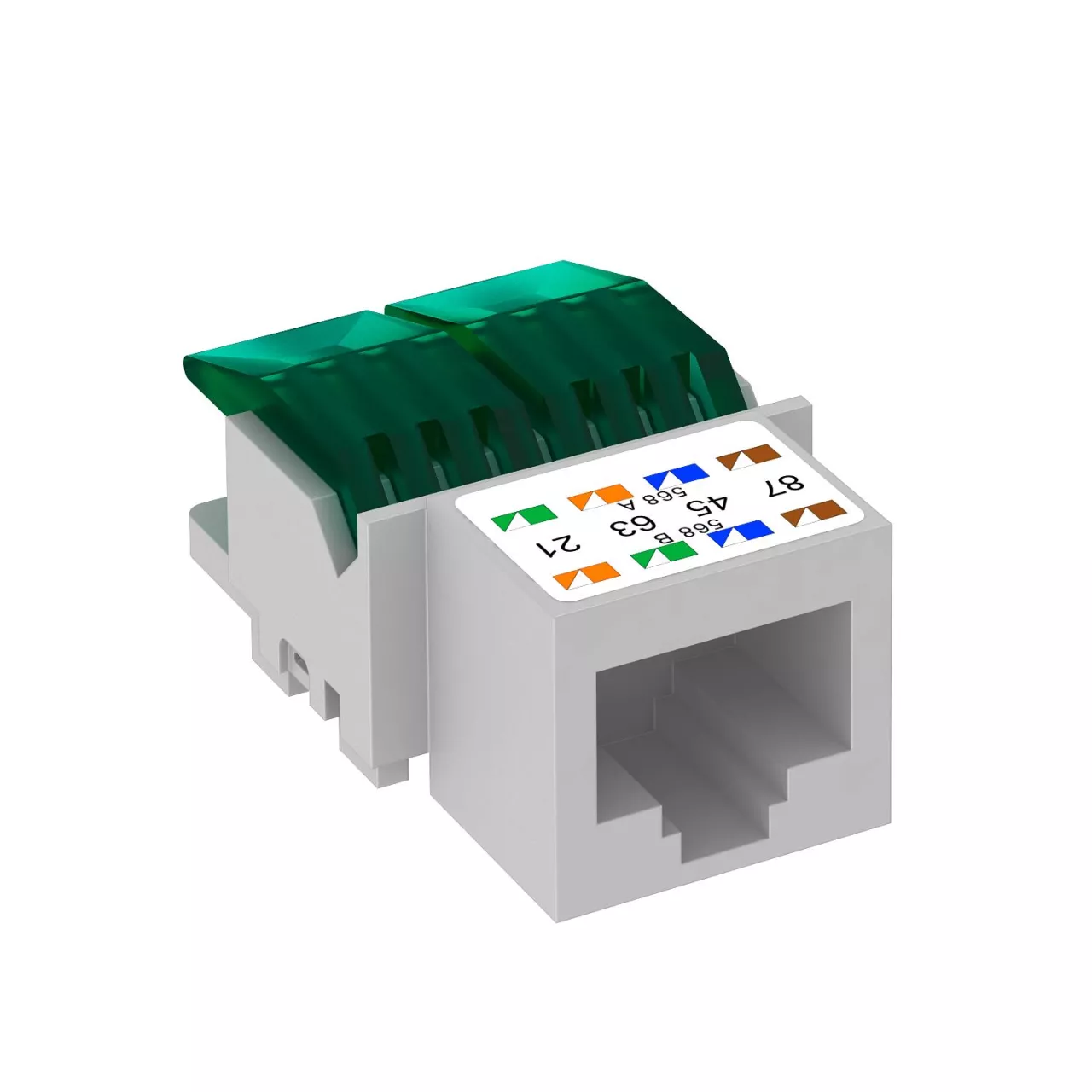 Moduł przyłączeniowy kat 5e, nieekranowany, z jednym gniazdem RJ45. W komplecie z osłoną przeciwpyłową, opaską zaciskową do kabli i instrukcją montażu. Do zastosowania z ramkami teleinformatycznymi typu DTG-2RM i DTS-2RM.