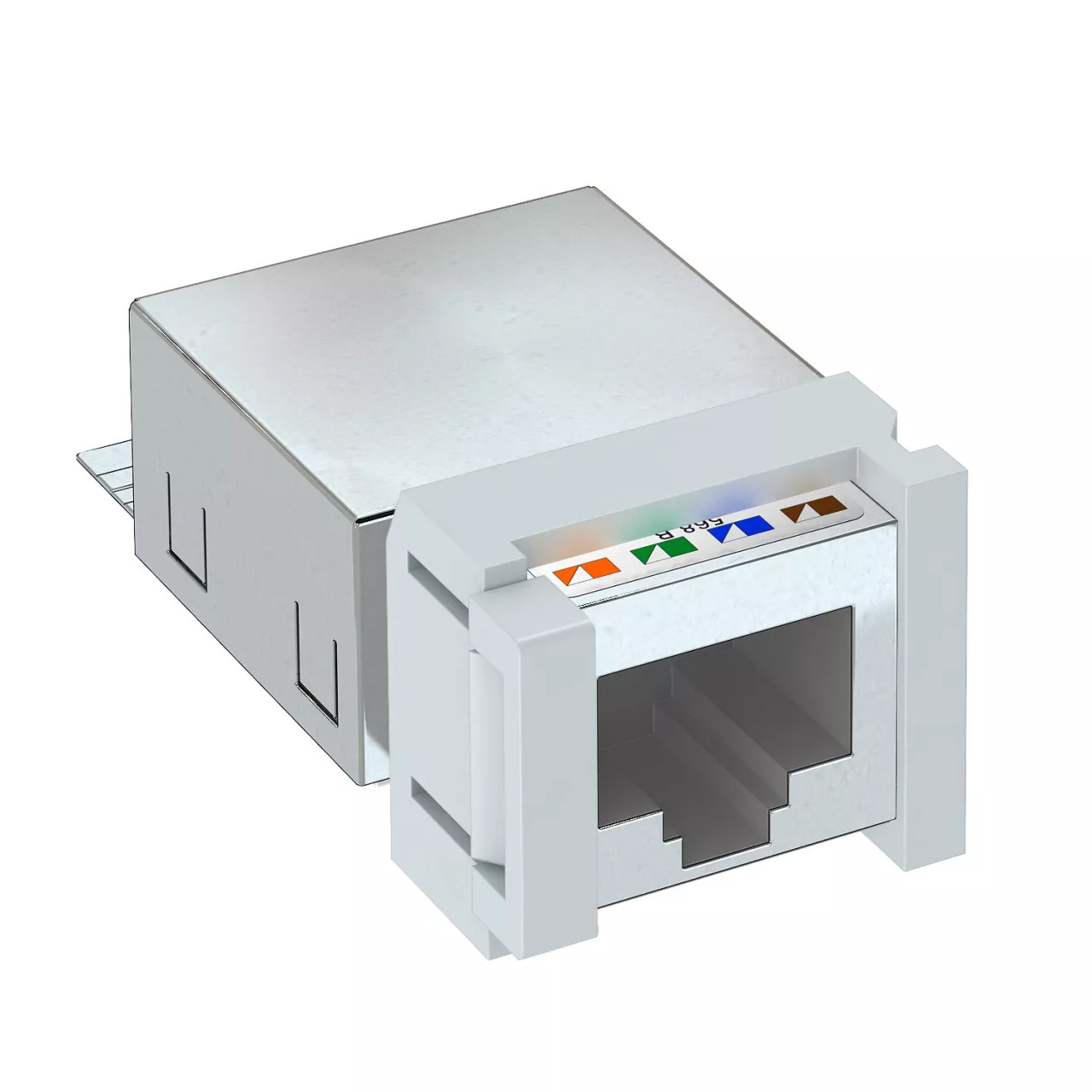 Moduł przyłączeniowy kat 5e, ekranowany, z jednym gniazdem RJ45. W komplecie z osłoną ekranującą EMV, osłoną przeciwpyłową, opaską zaciskową do kabli, mocowaniem Snap-In i instrukcją montażu. Do montażu w ramkach teleinformatycznych typu MTM 2C i MTM 3C, MPR2 2C, MTGE2 2C, MTGE2 15 2C i MTGE2 F 2C.