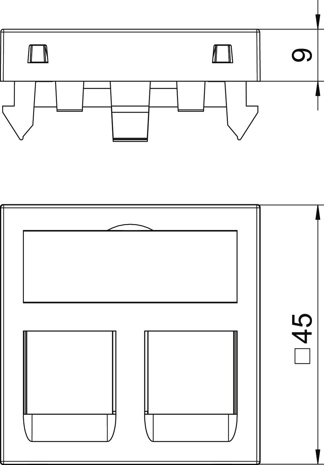 Ramka teleinformatyczna z wyjściem prostym na dwa moduły przyłączeniowe teleinformatyczne RJ45. Mocowanie zatrzaskowe do poziomego i pionowego montażu w otoczeniu systemowym. Typ C ma otwór systemowy 19,30 X 14,80, do bezpośredniego montażu modułów przyłączeniowych.