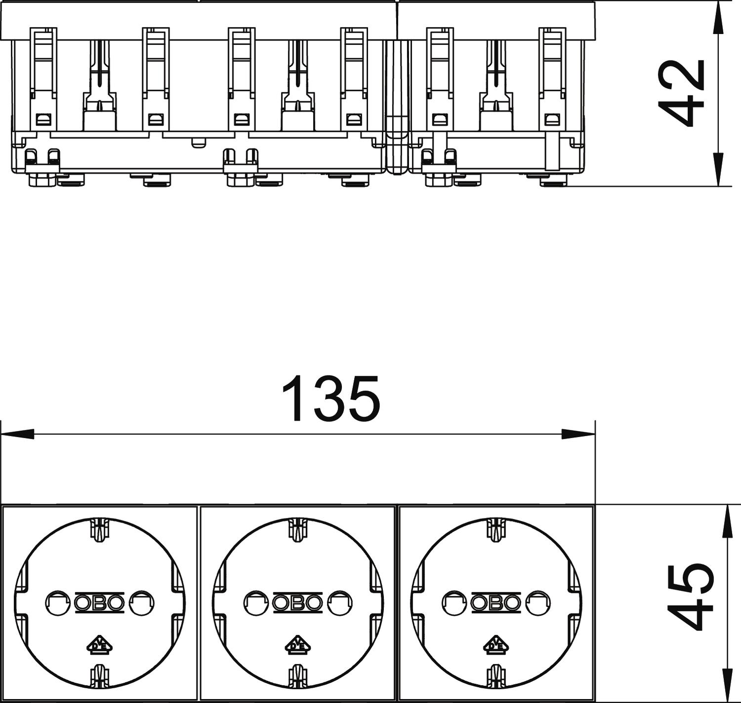 STD-D0 SRO3 Gniazdo 0°, potrójne z uziemieniem ochornnym
