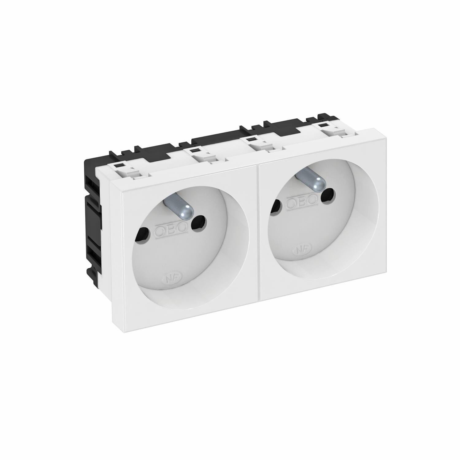 Gniazdo zasilające z bolcem uziemiającym podwójne, 0°, z podwyższonym stopniem ochrony przed dotykiem, z szybkozłączkami, 2-biegunowe, 16 A, 250 V~, z zaciskami przyłączeniowymi wg IEC 60884-1.