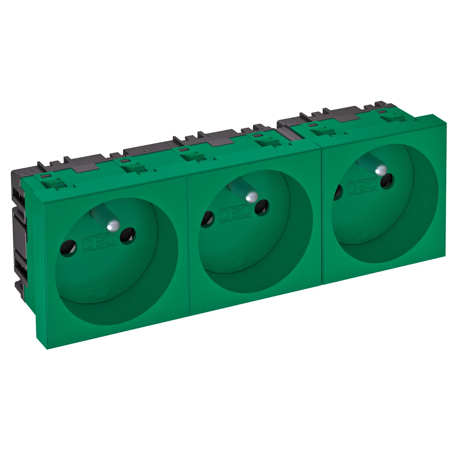 Gniazdo zasilające z bolcem uziemiającym potrójne, 0°, z podwyższonym stopniem ochrony przed dotykiem, z szybkozłączkami, 2-biegunowe, 16 A, 250 V~, z zaciskami przyłączeniowymi wg IEC 60884-1.
