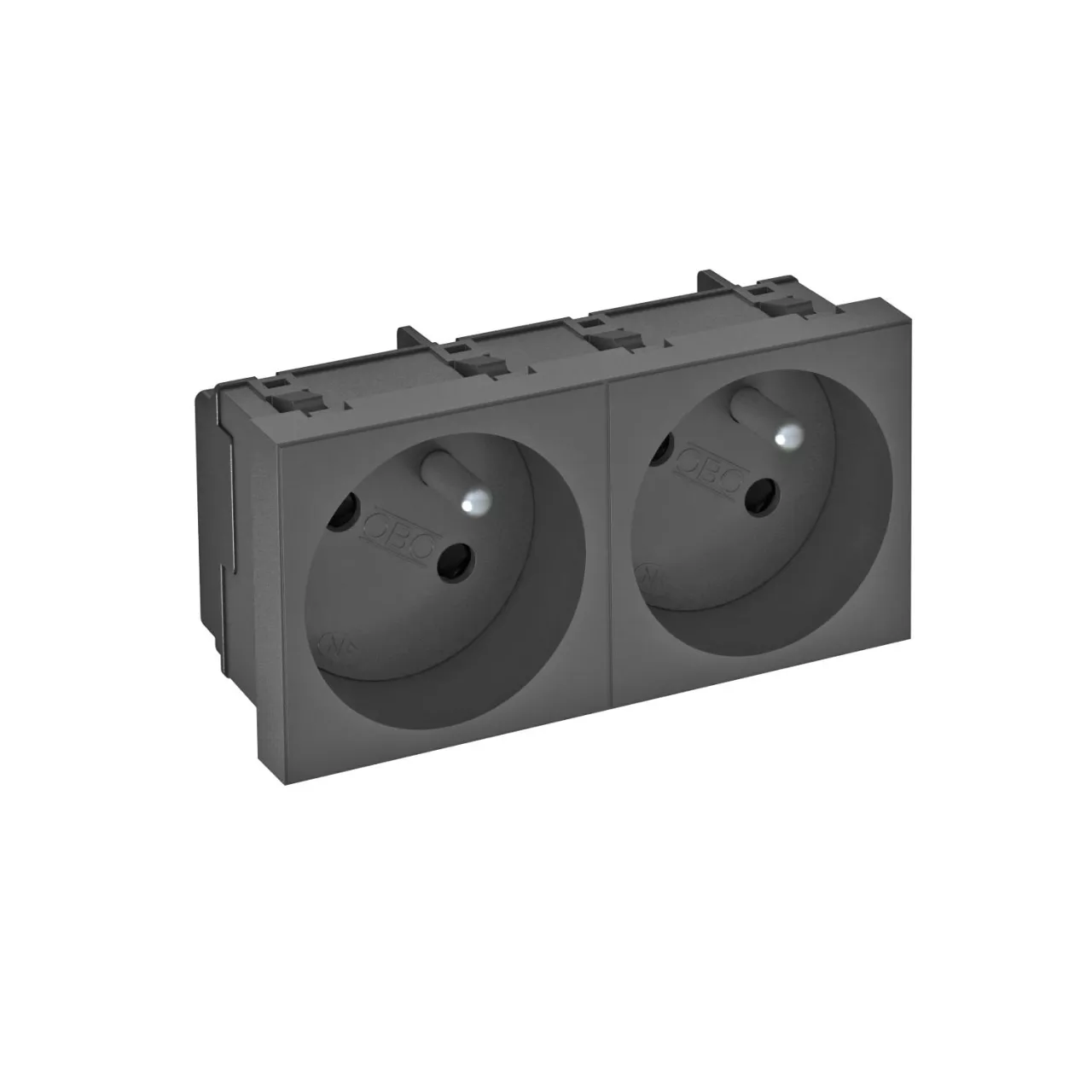 Gniazdo zasilające z bolcem uziemiającym podwójne, 33°, z podwyższonym stopniem ochrony przed dotykiem, z szybkozłączkami, 2-biegunowe, 16 A, 250 V~, z zaciskami przyłączeniowymi wg IEC 60884-1.