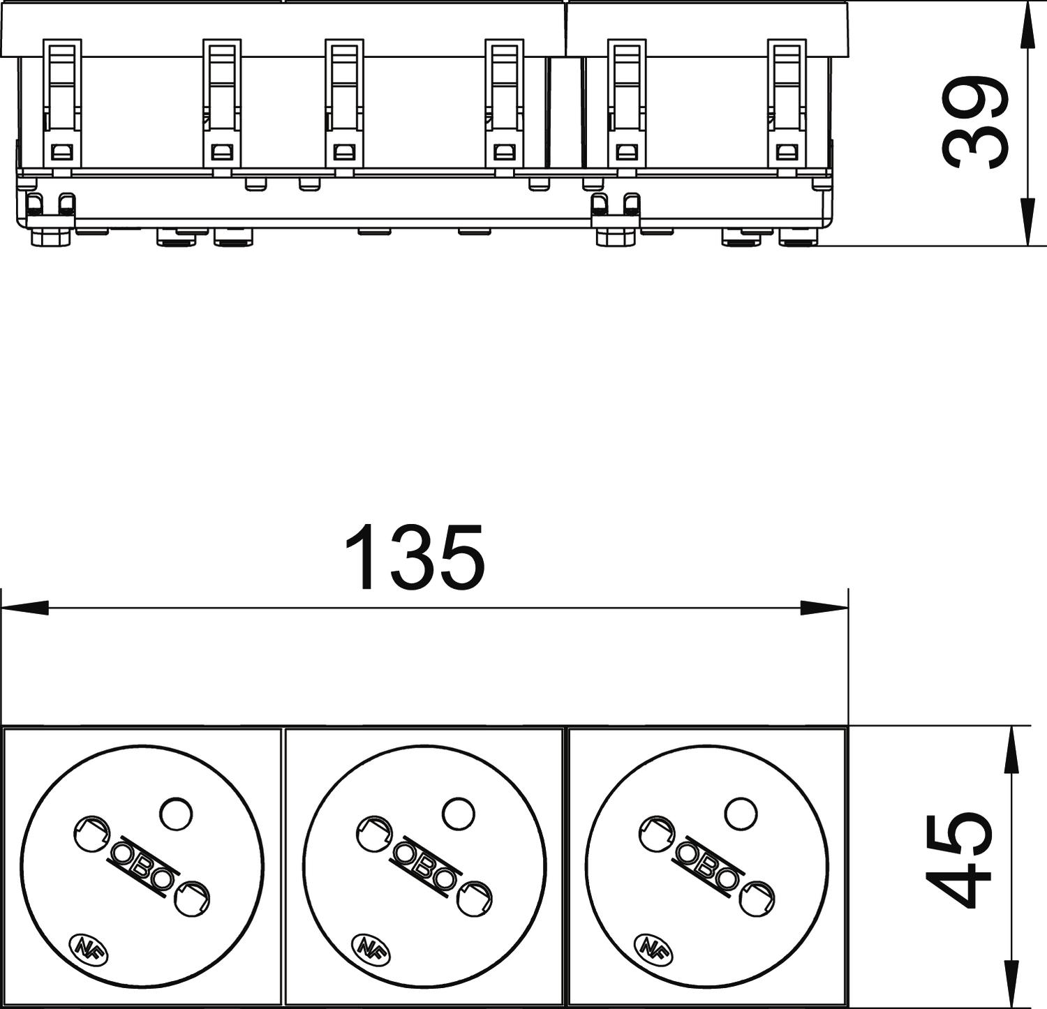 STD-F3 SRO3 Gniazdo 33°, potrójne z bolcem uziemiającym